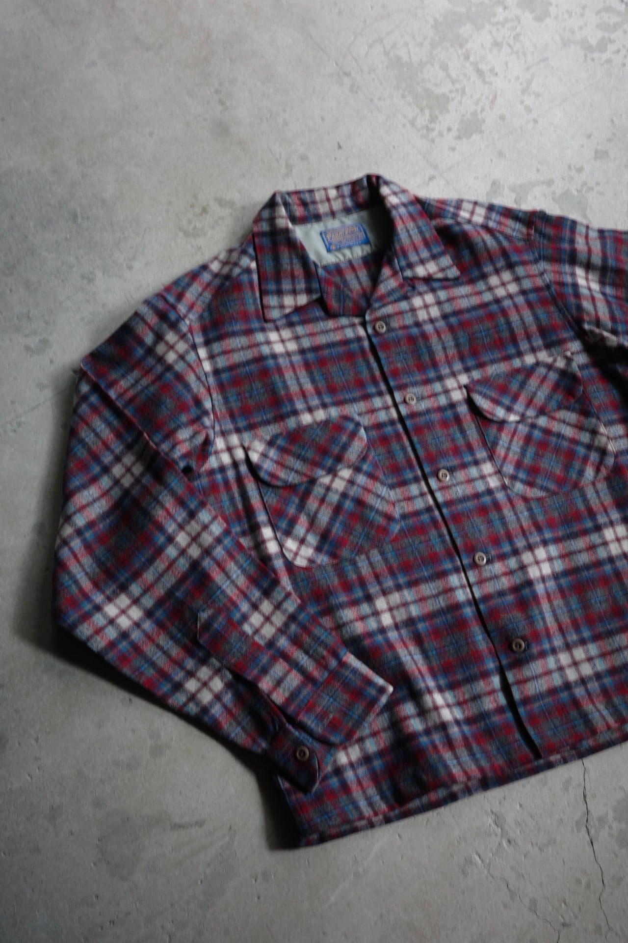 70's "PENDLTON" wool check board shirt.