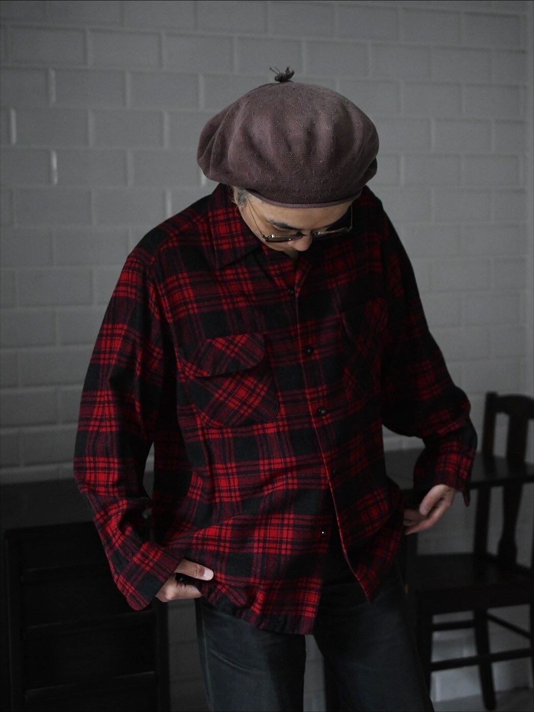 50's "PENDLTON" wool check board shirt.