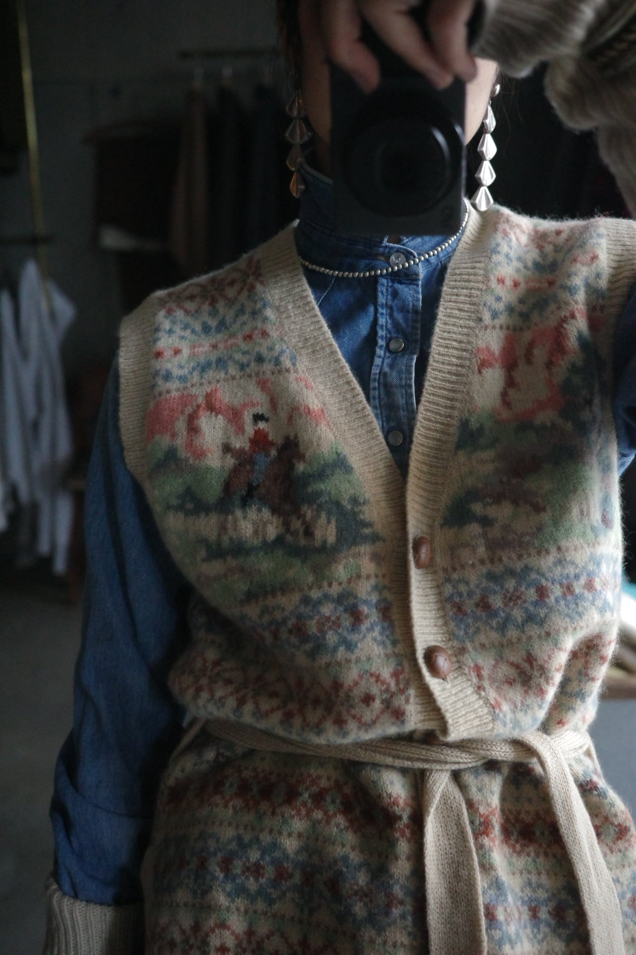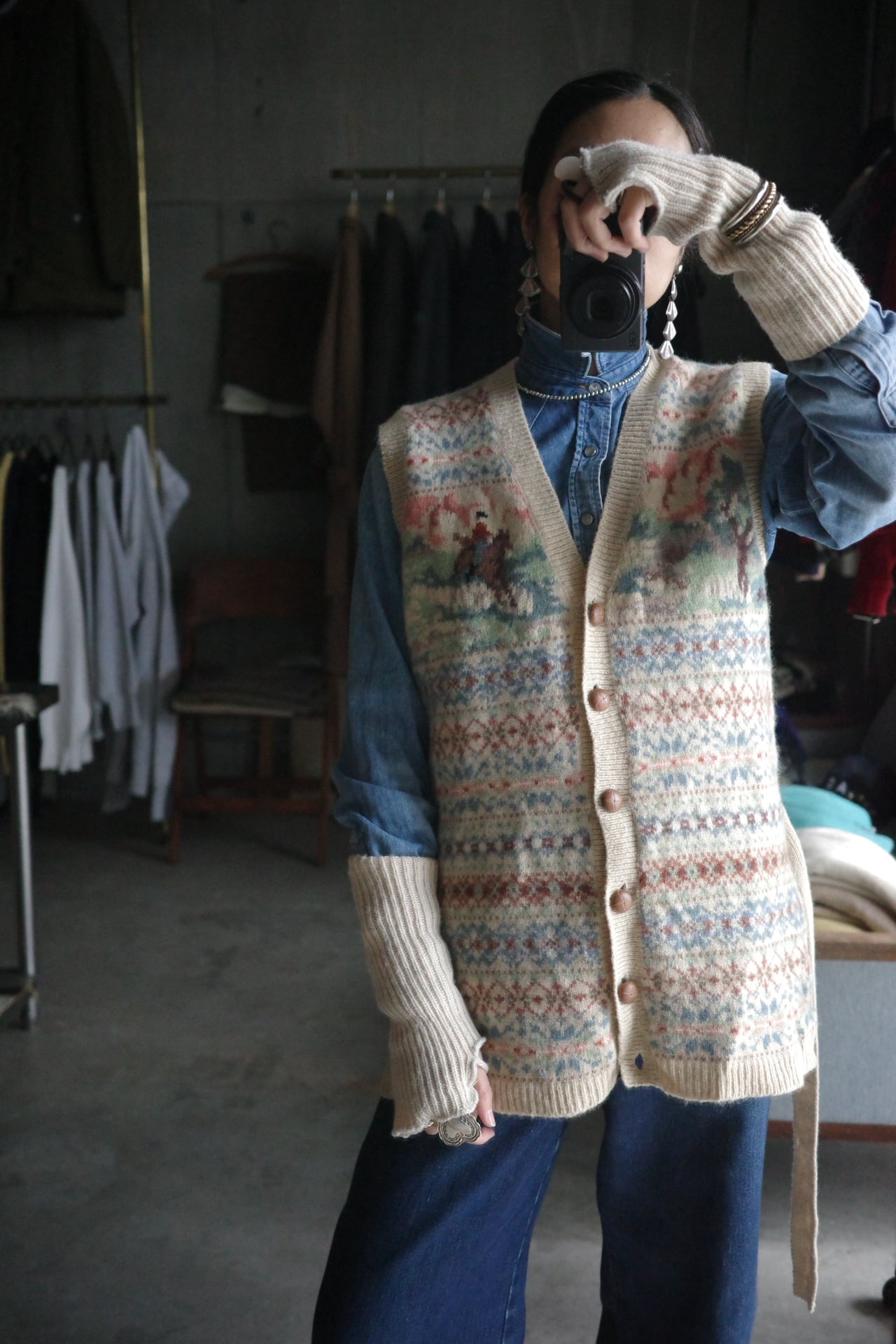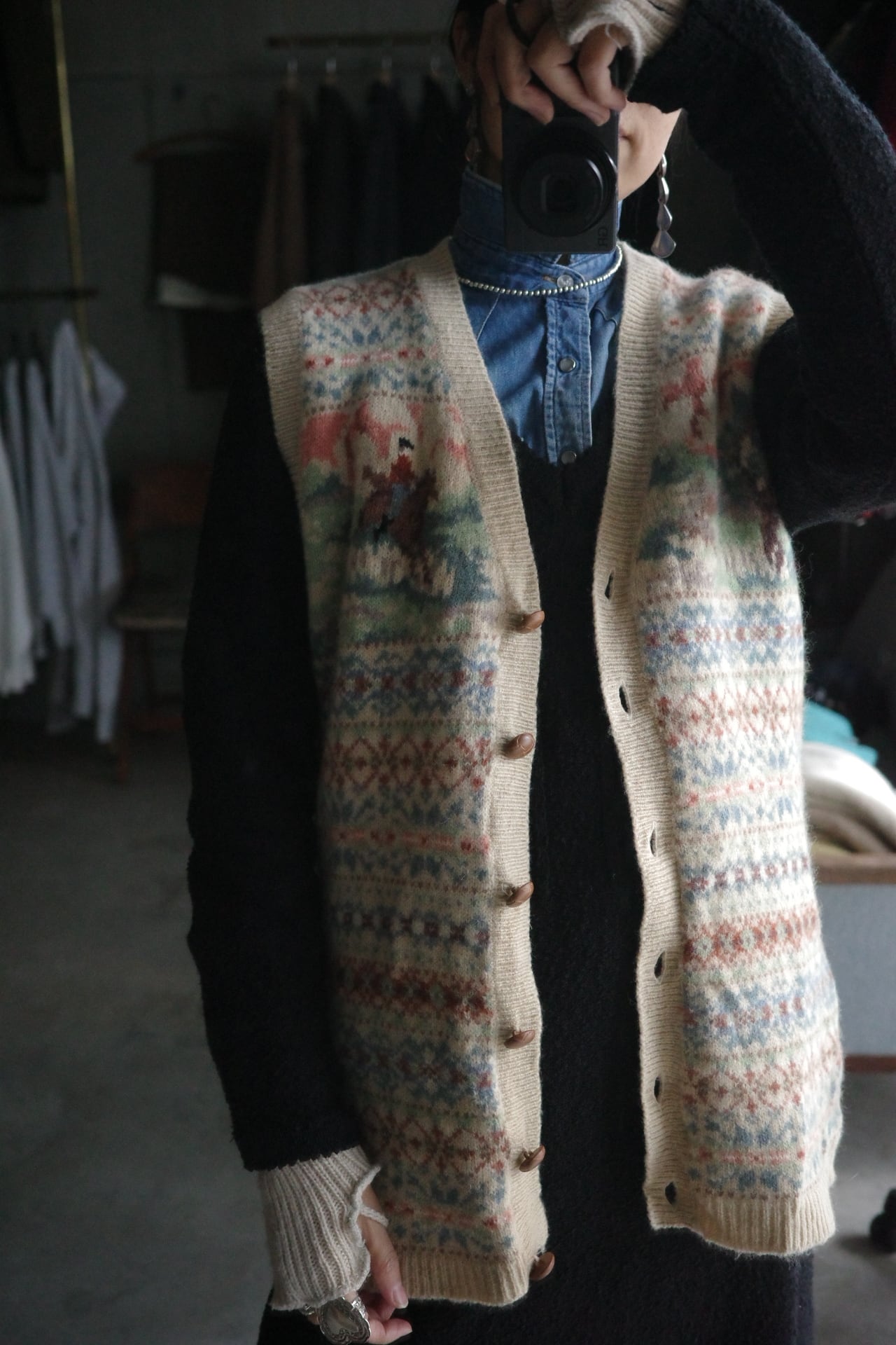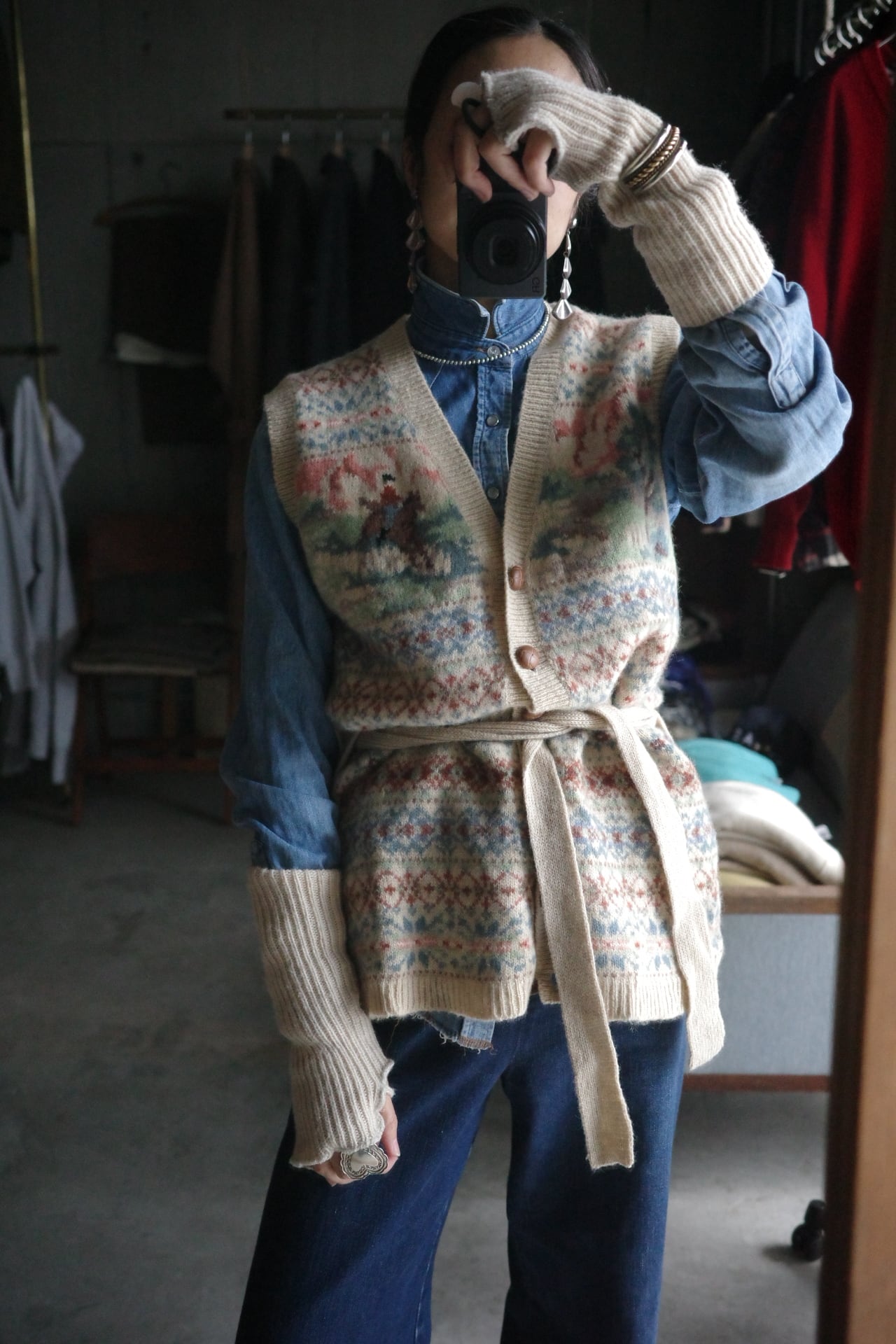 90's Shetland wool fairaisle design knit vest.