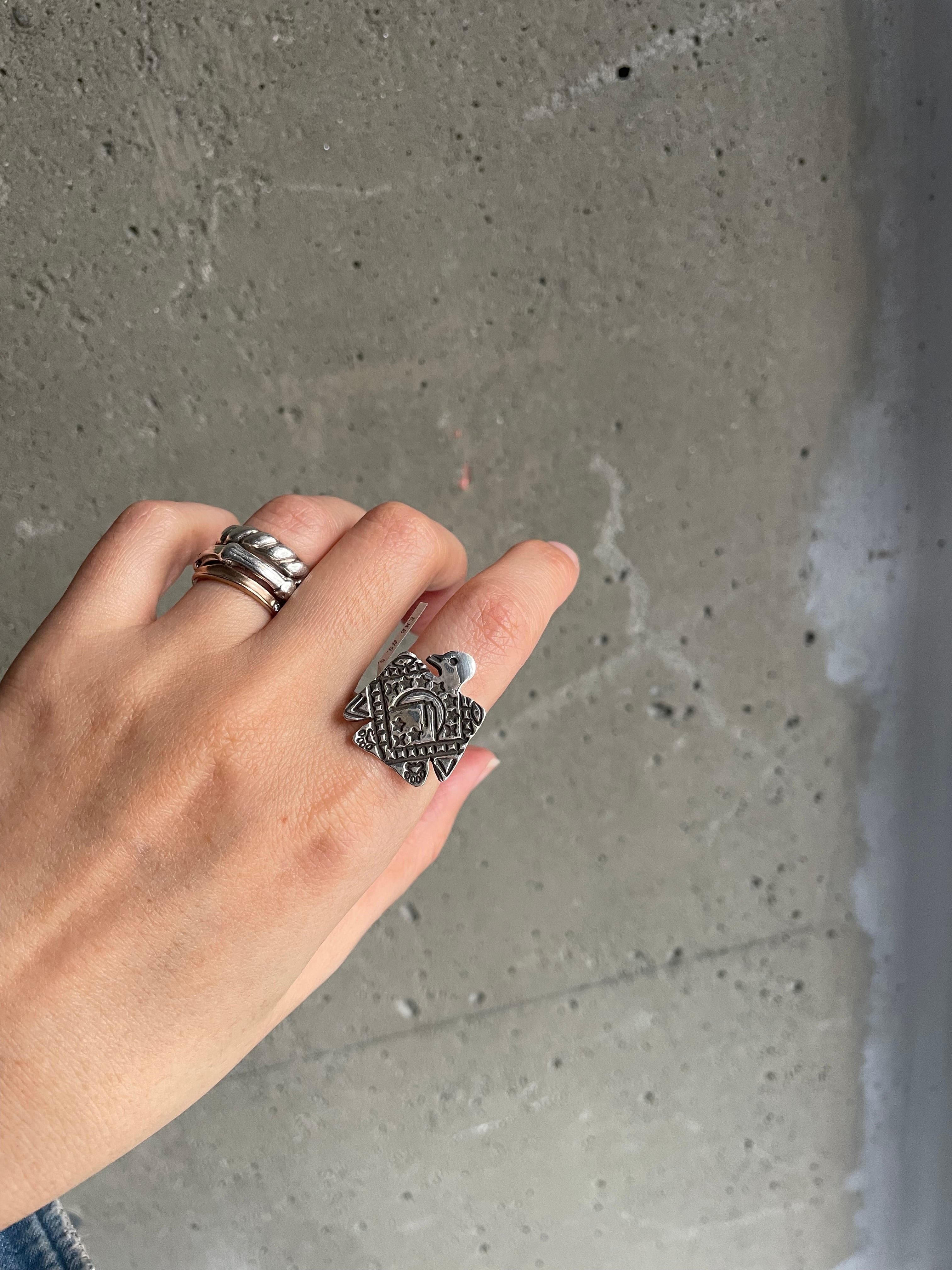 "ERICKA NICOLAS BEGAY" 925silver Thunderbird ring.