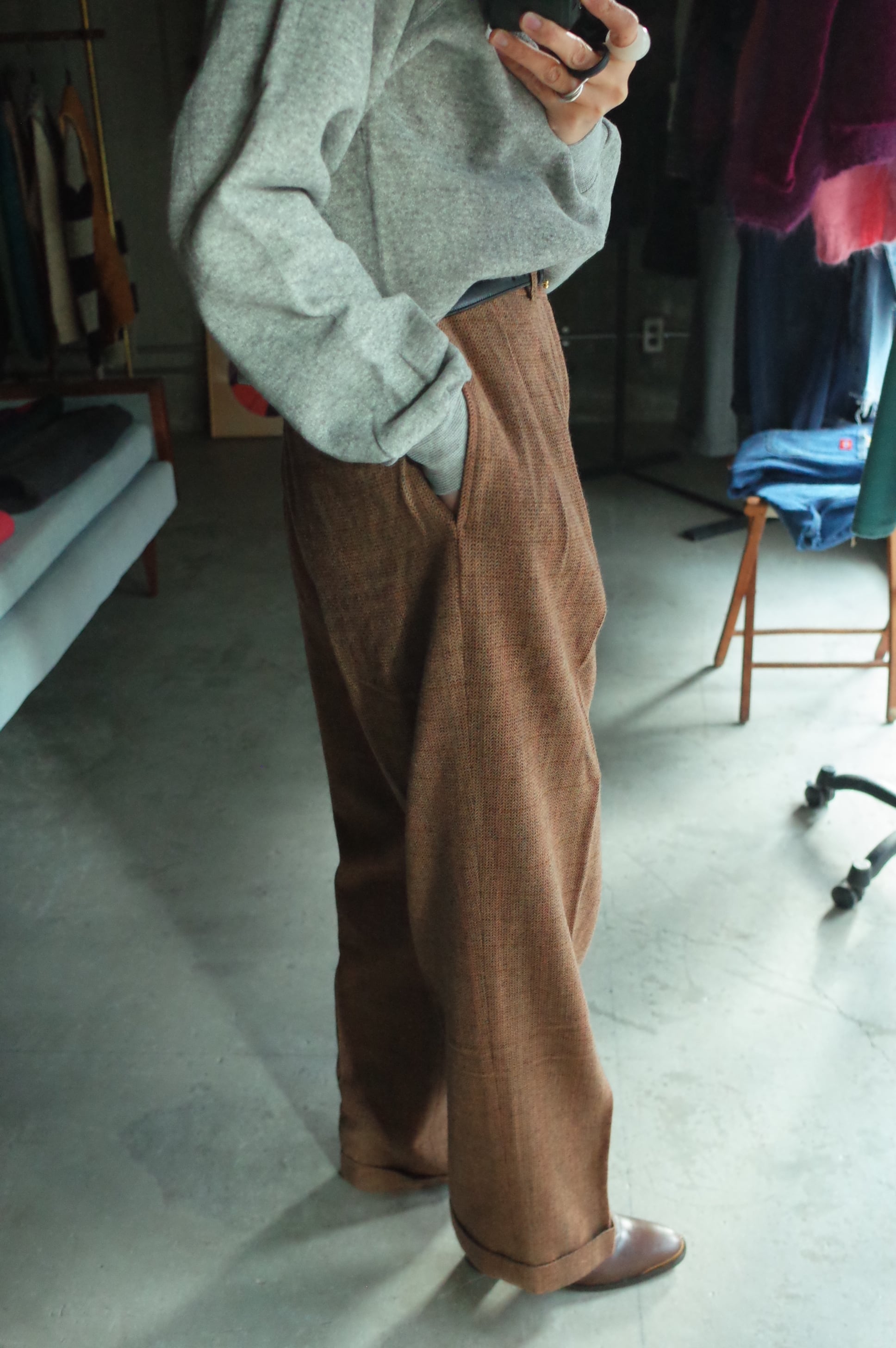 80-90's "Ralph Lauren" wool tweed slacks.[dead stock]