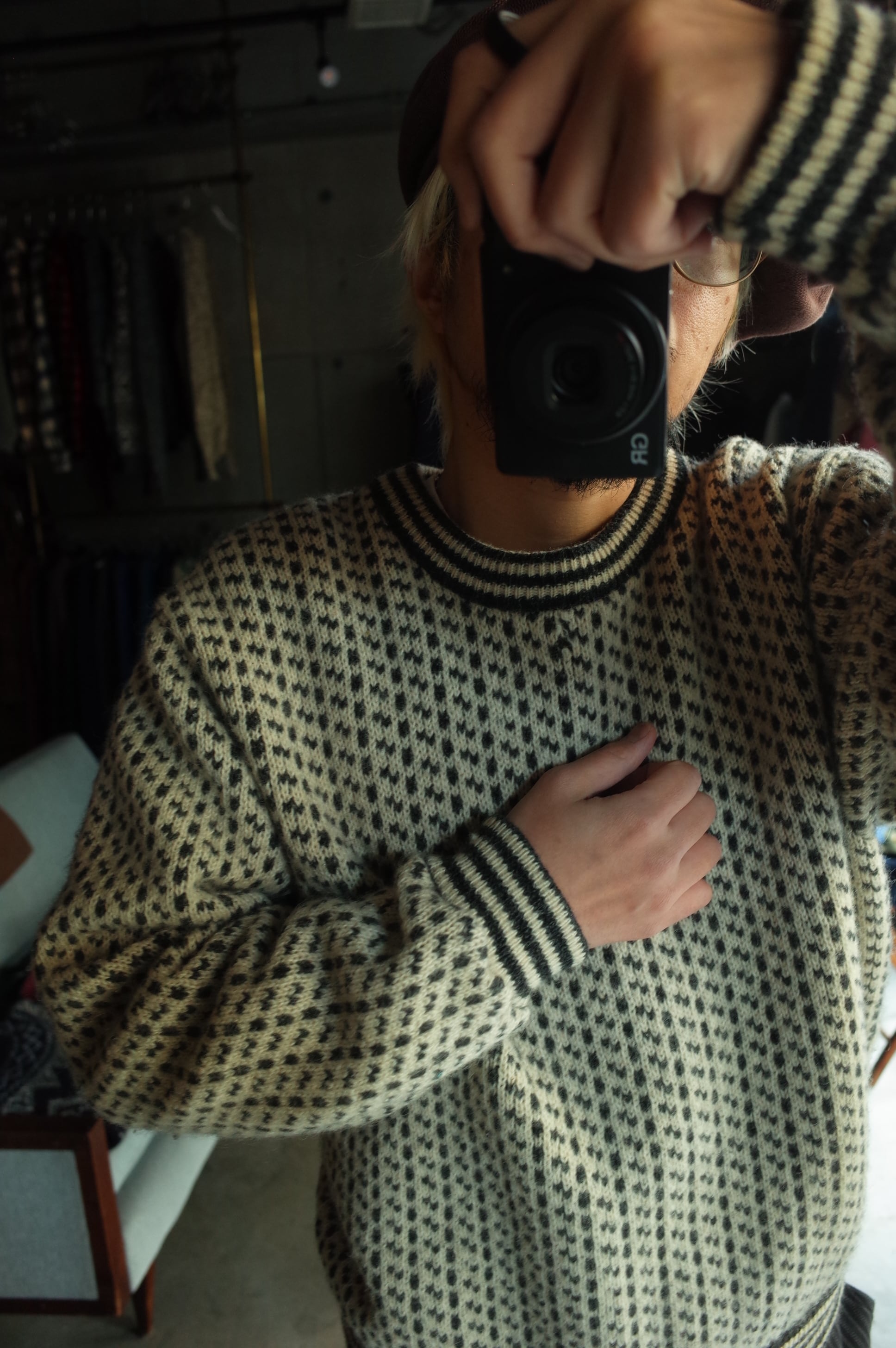 80's "L.L.Bean" birds eye wool sweater.