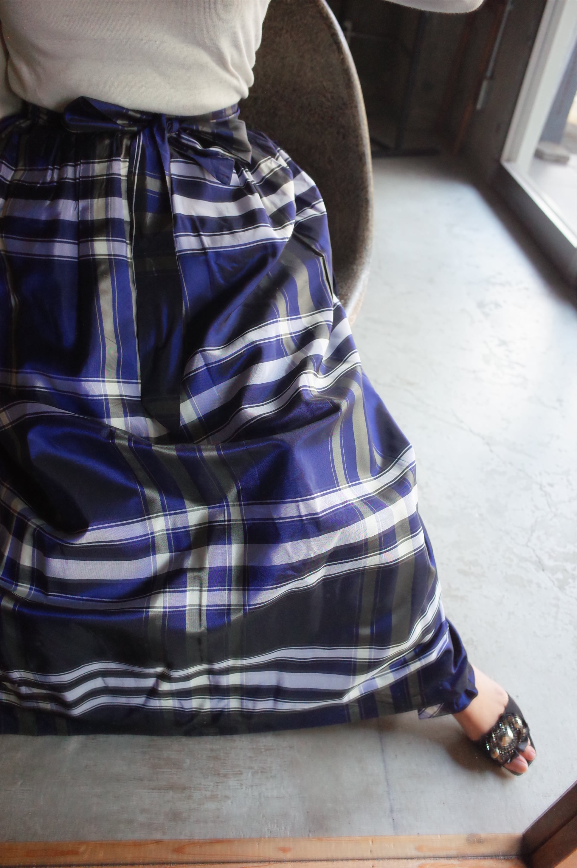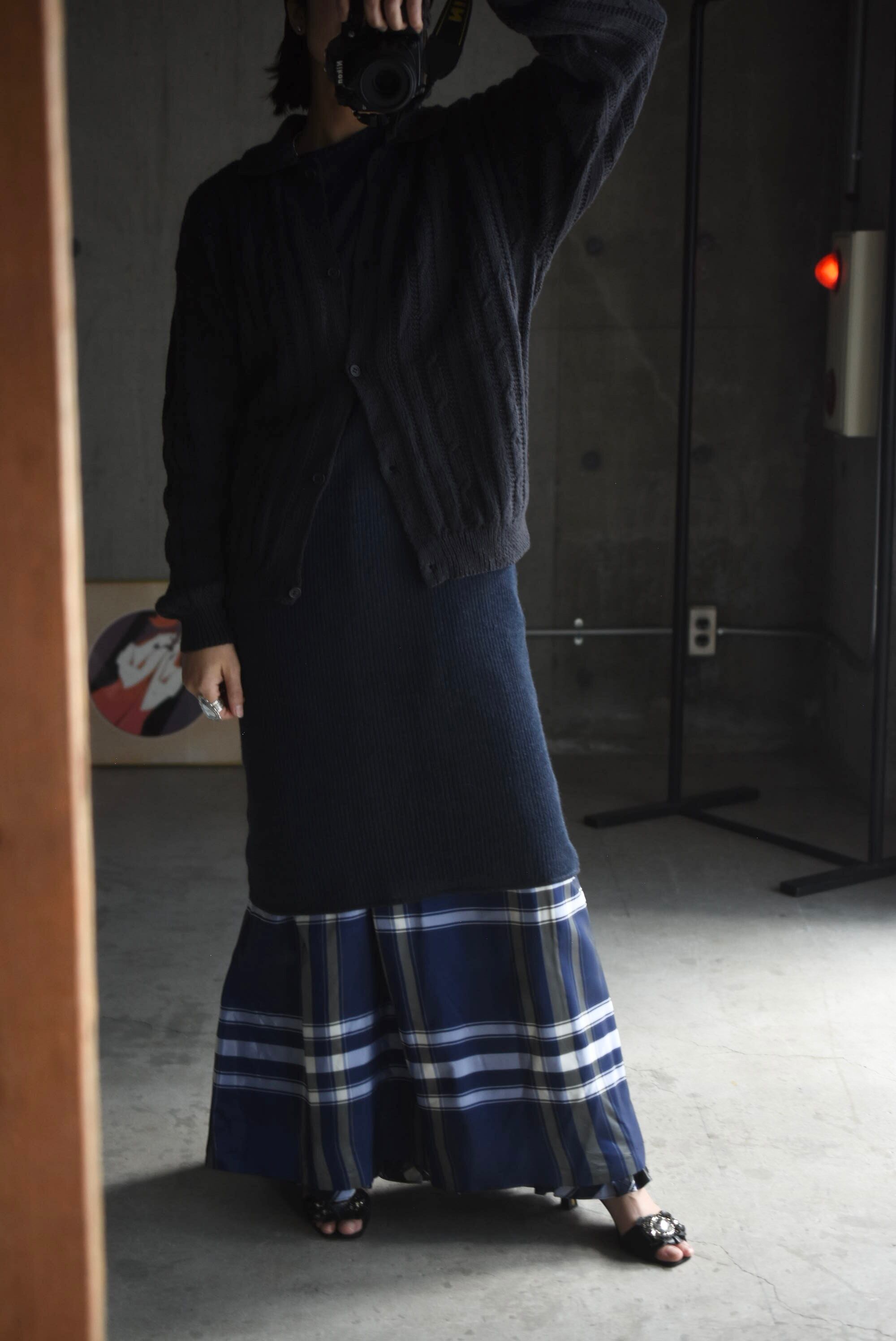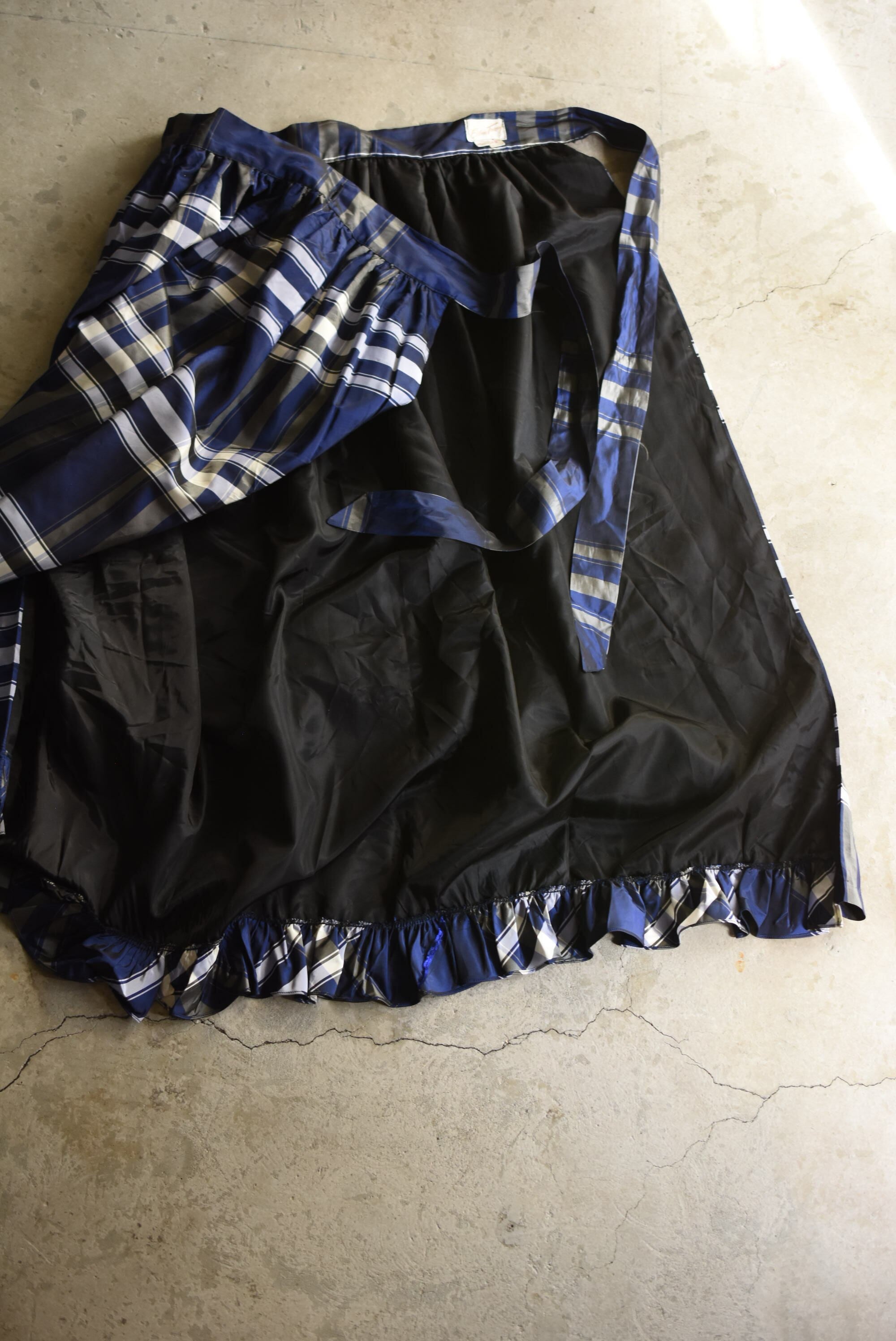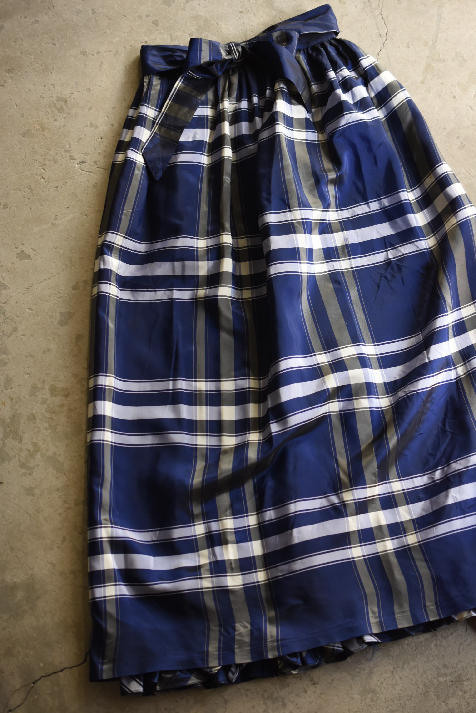 70-80's vintage acetate checked design wrap skirt.
