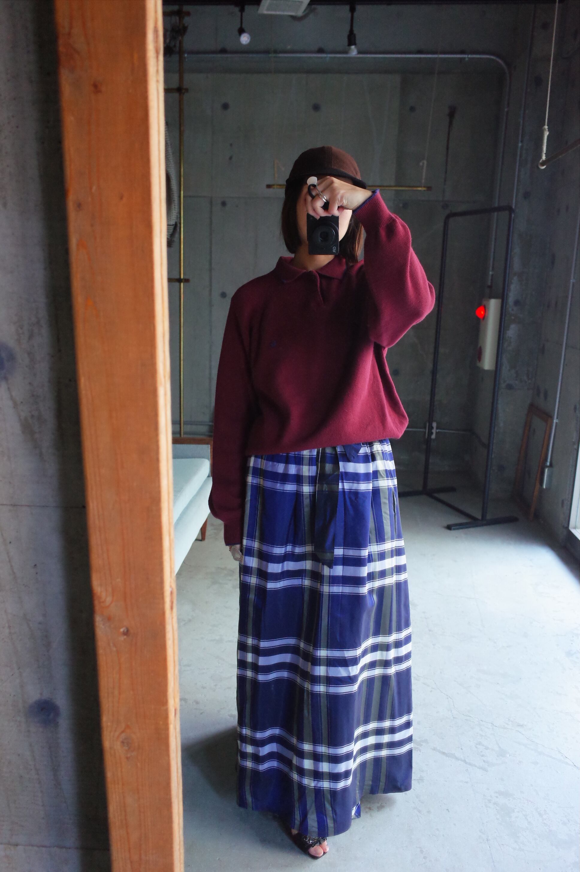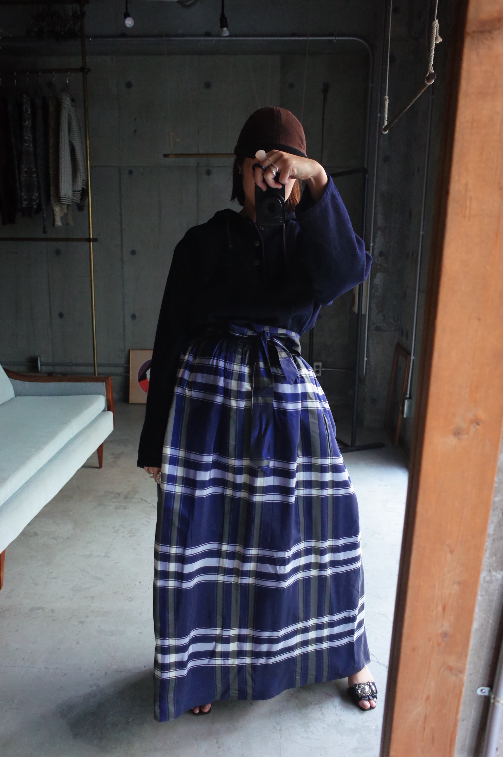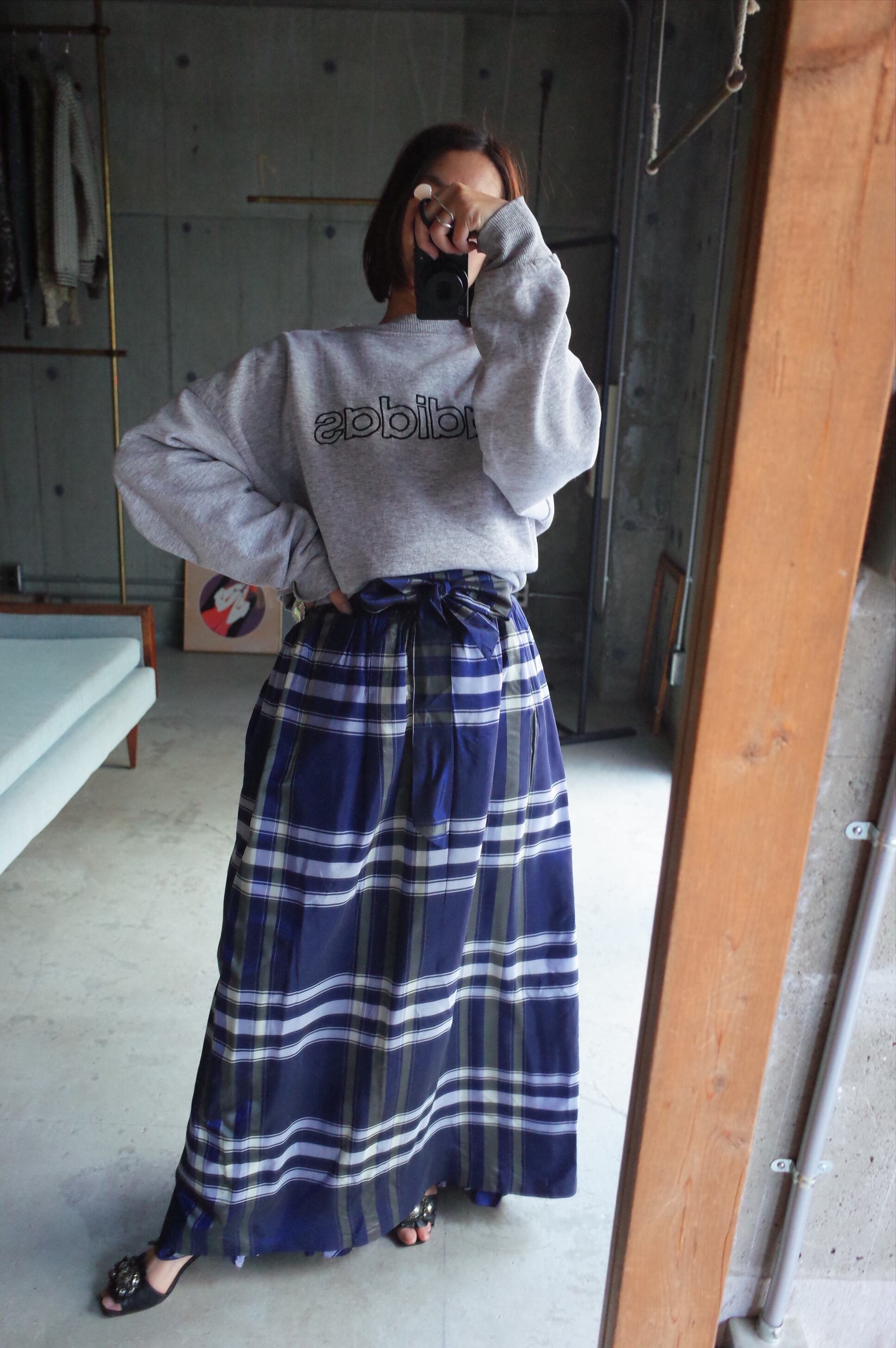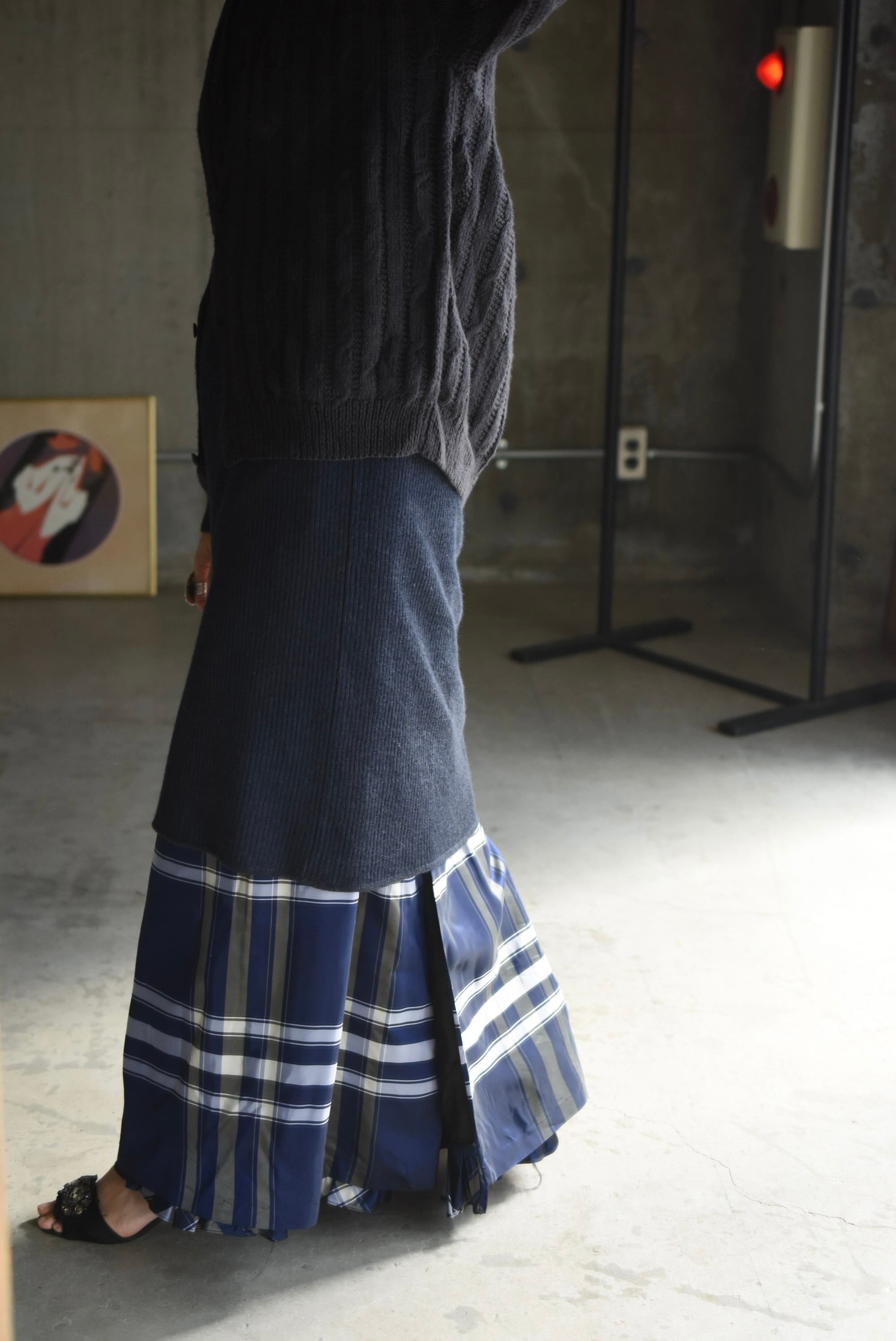 70-80's vintage acetate checked design wrap skirt.