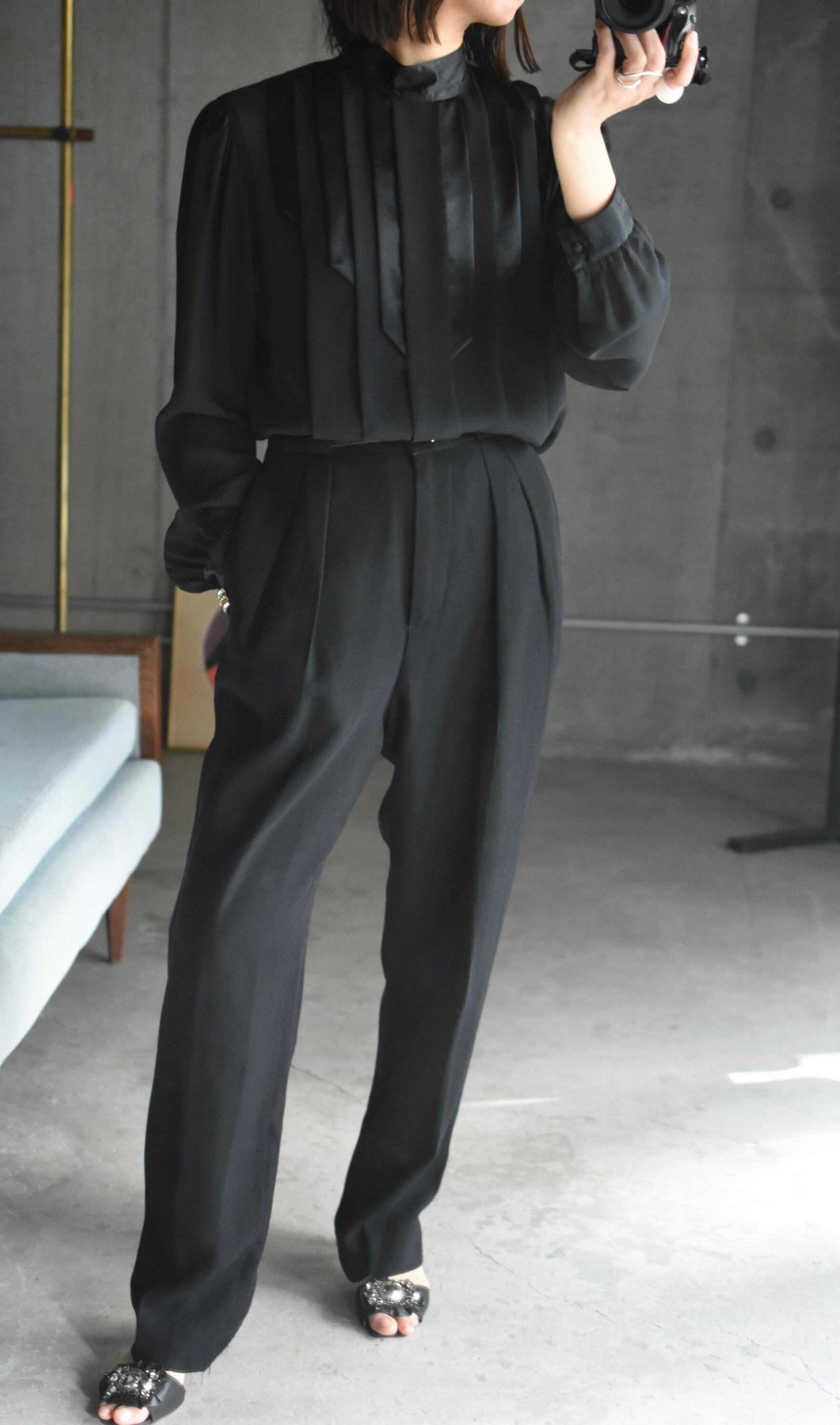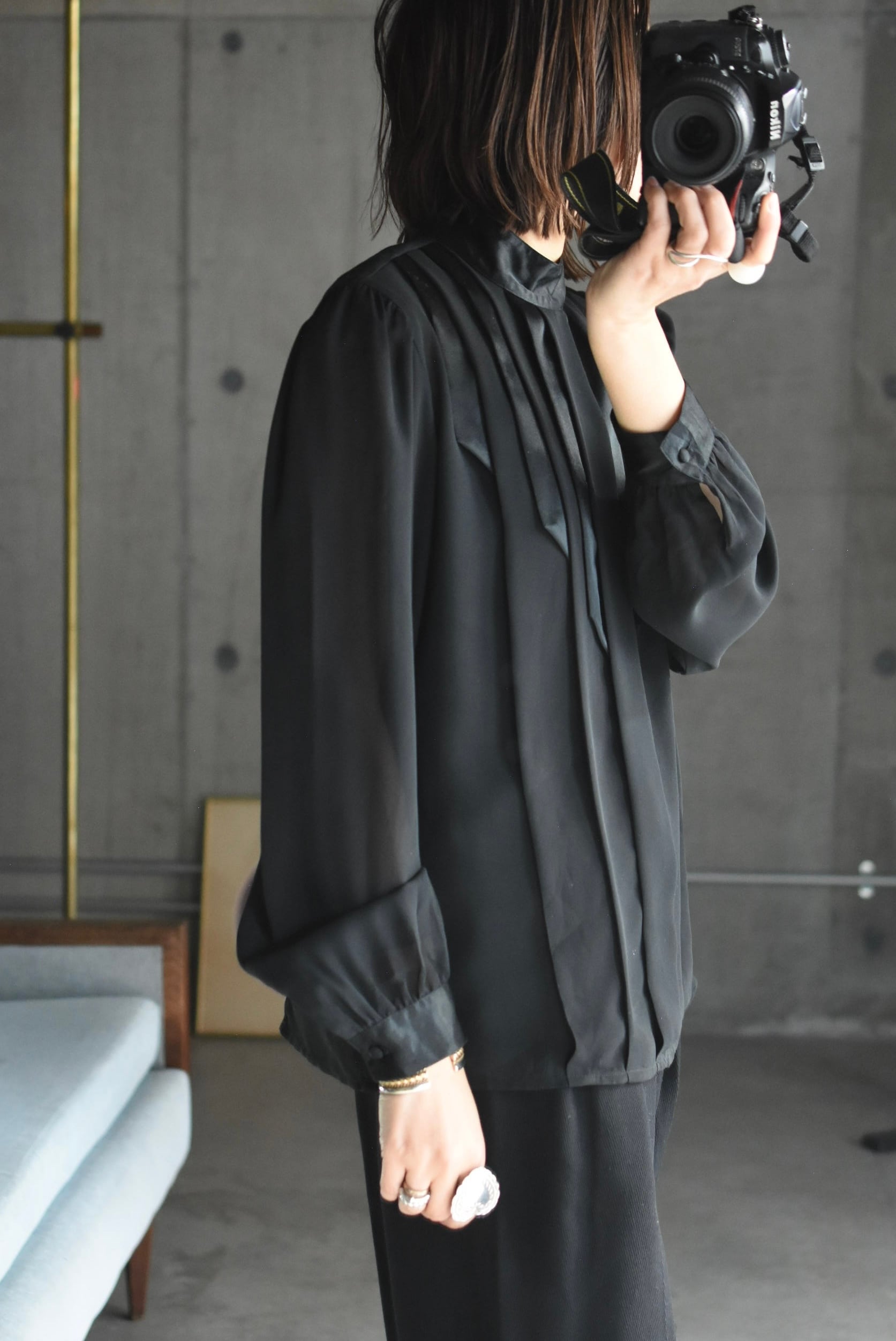 80's vintage pleats design blouse.