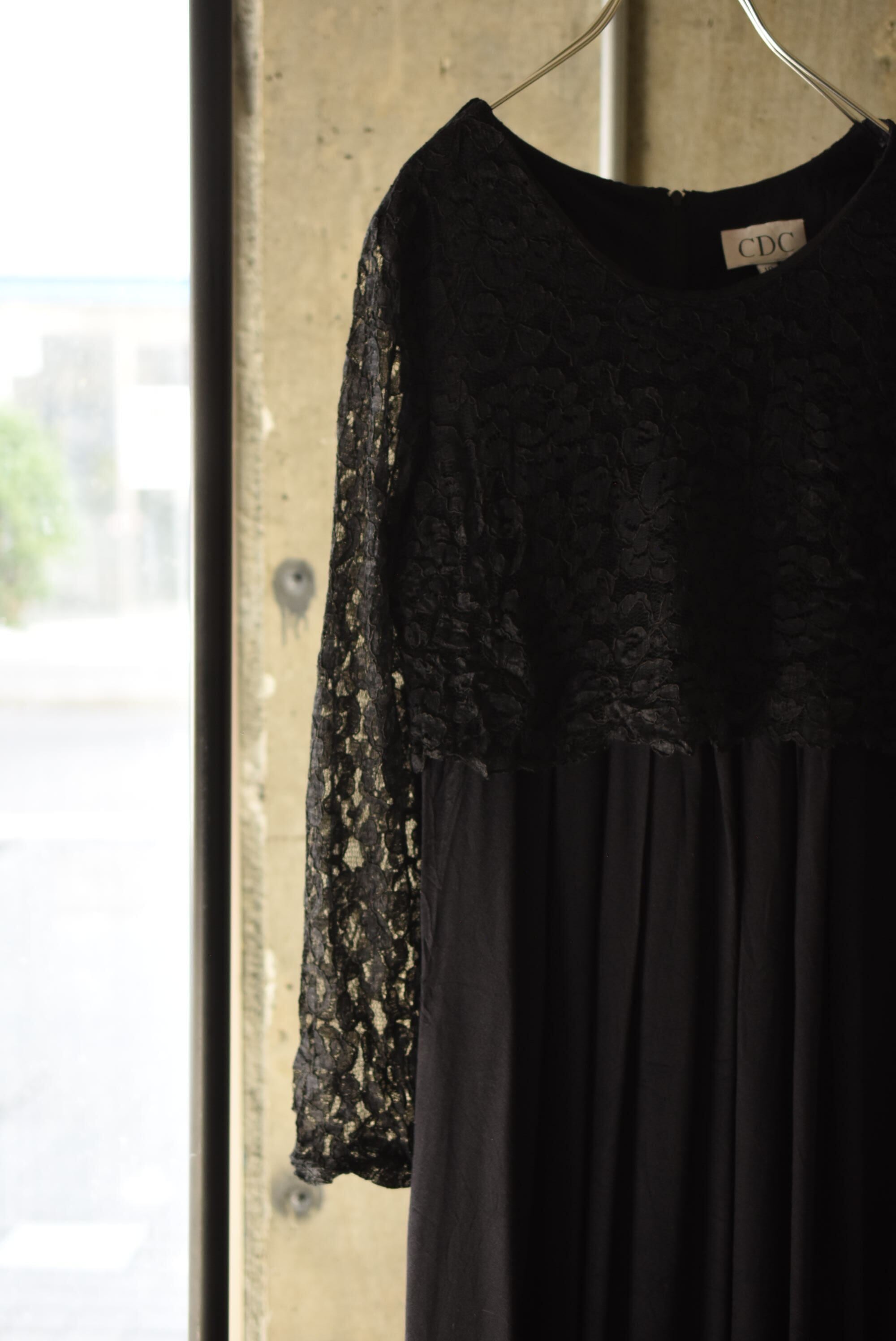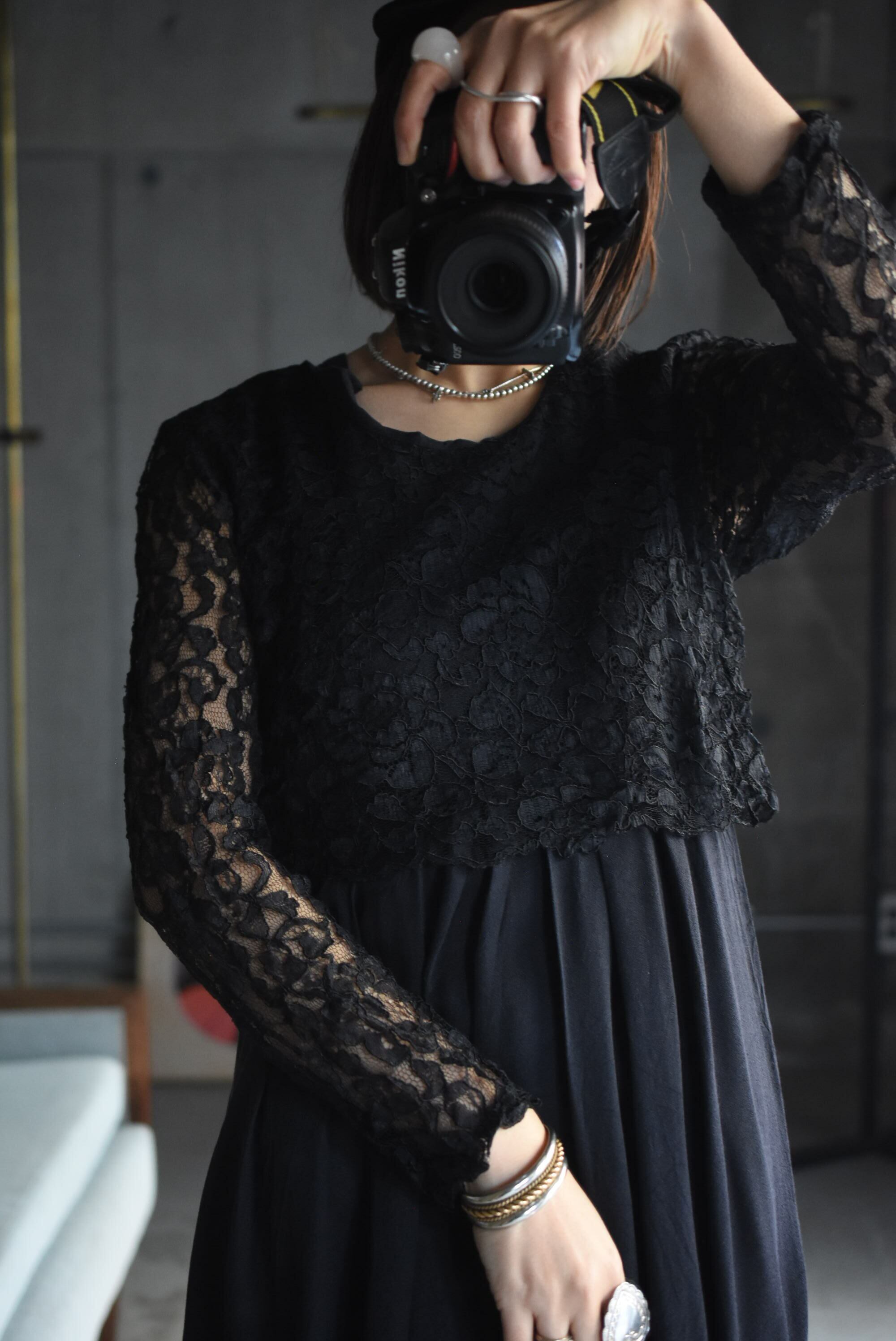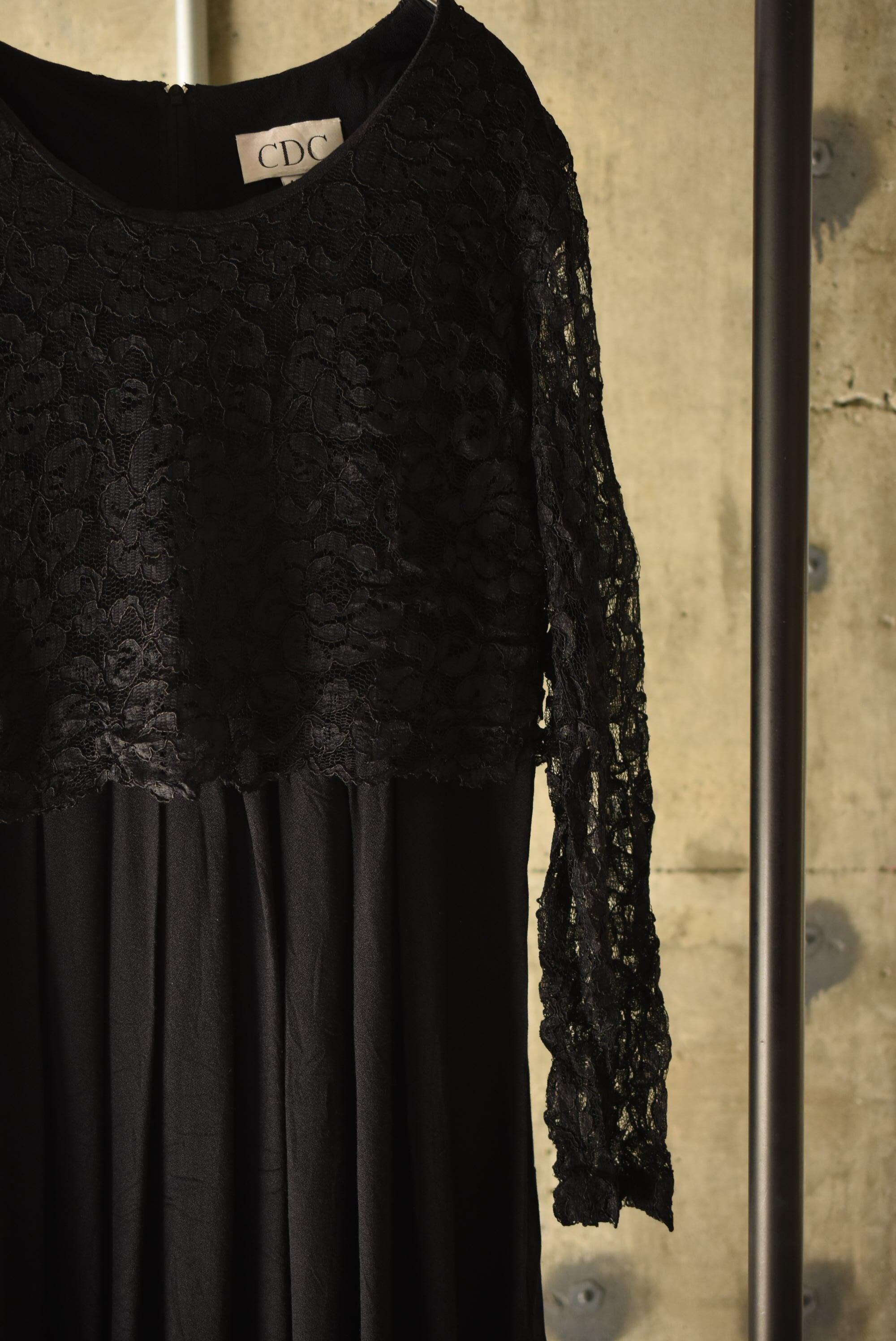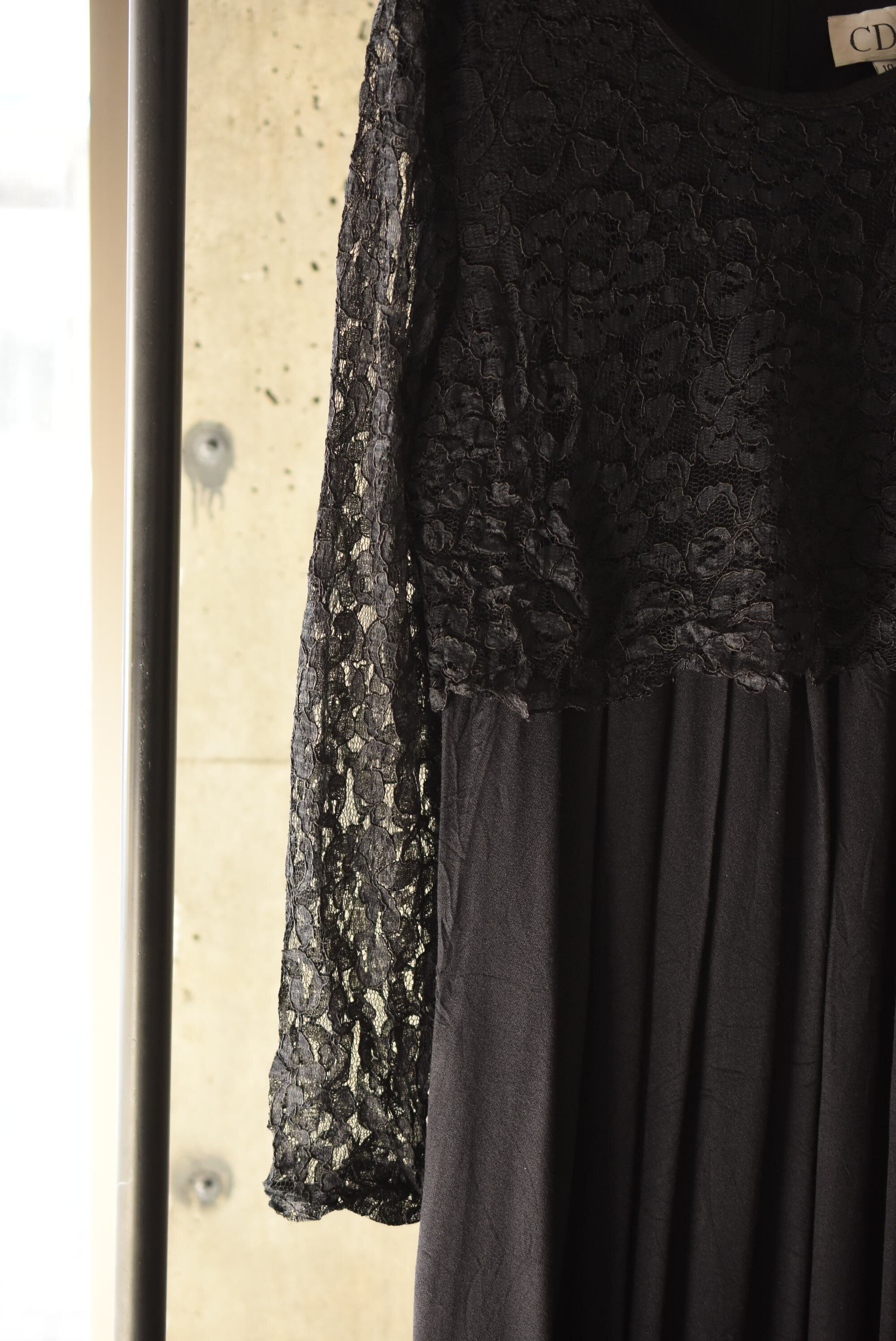 80's vintage design lace black dress.