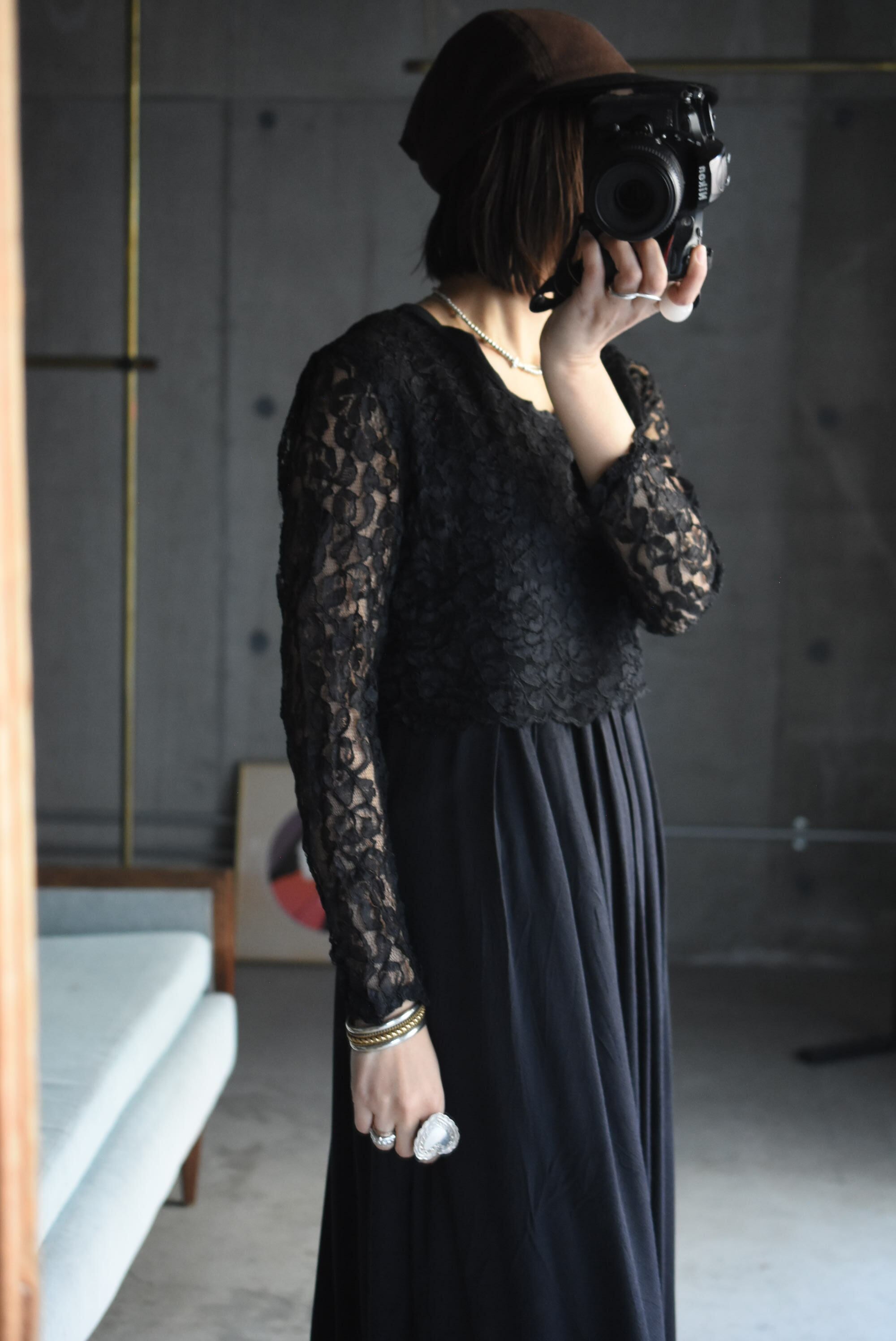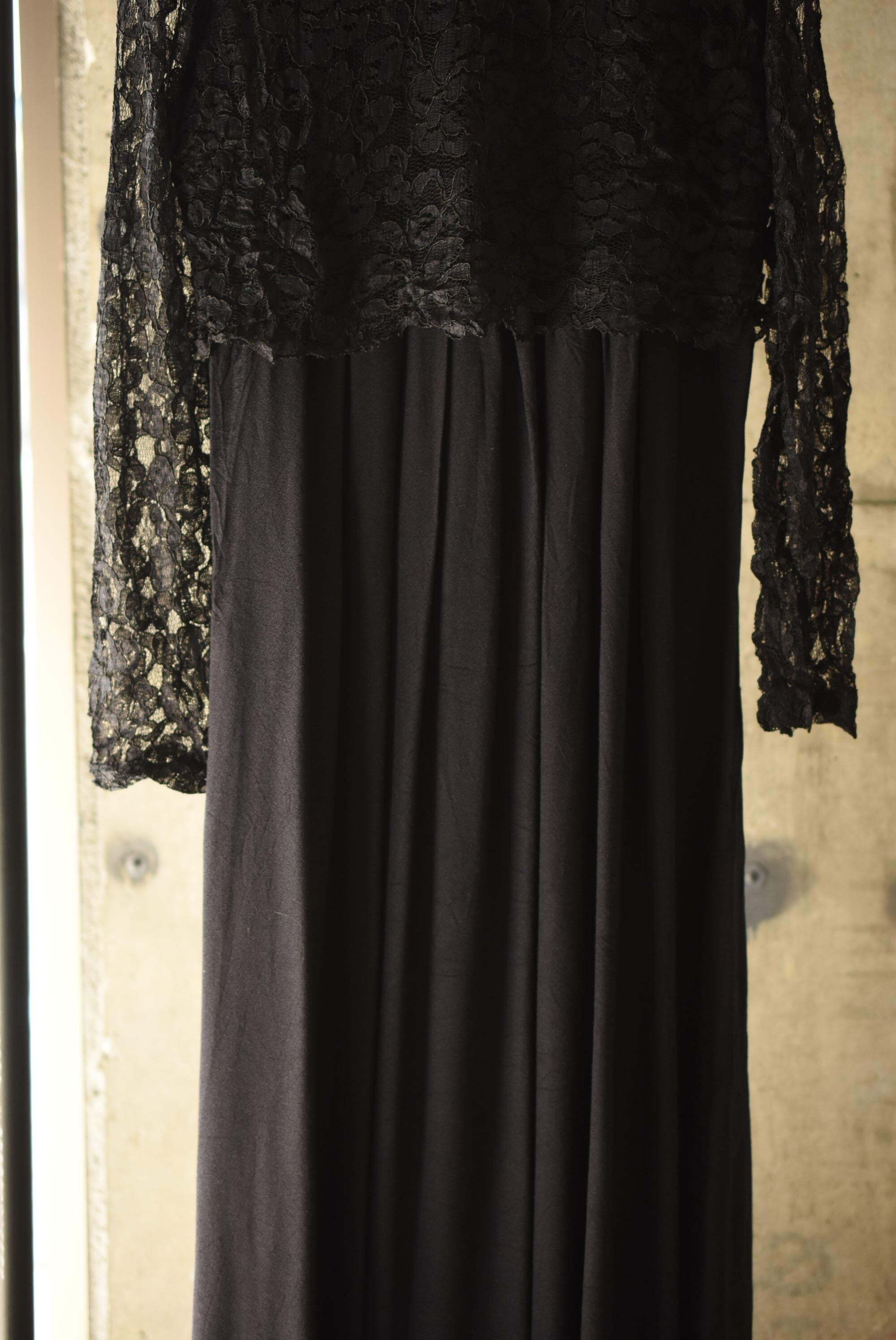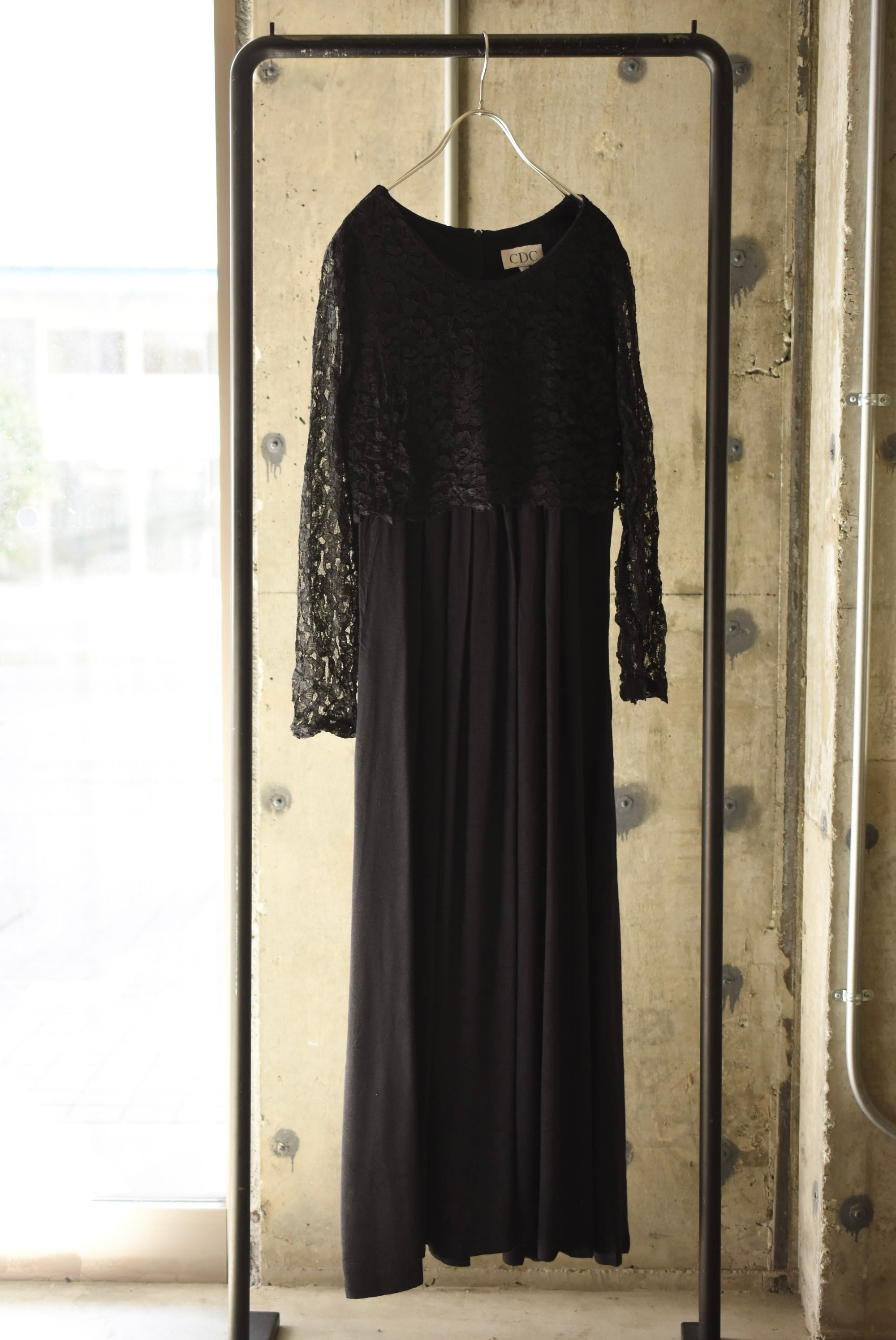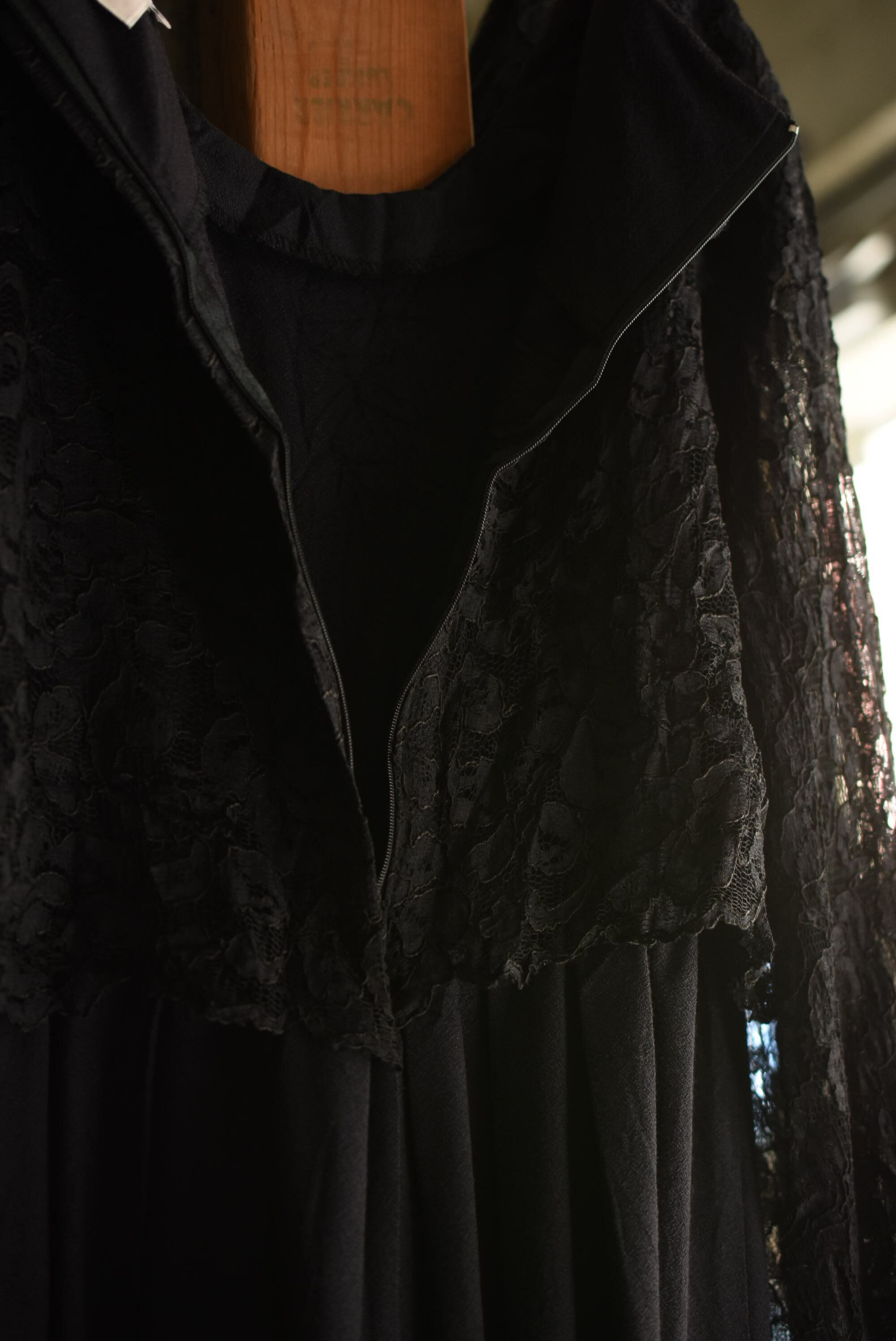80's vintage design lace black dress.