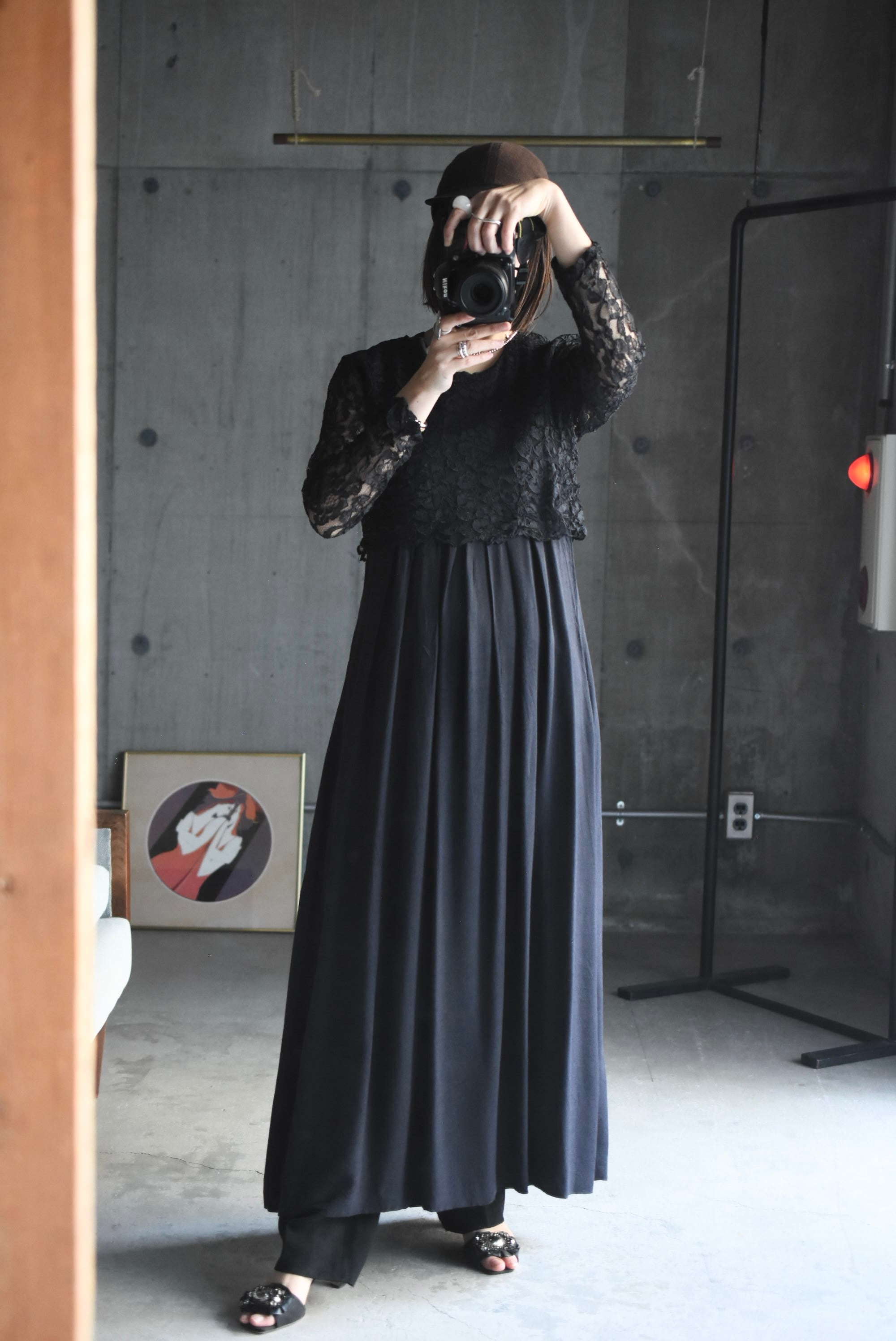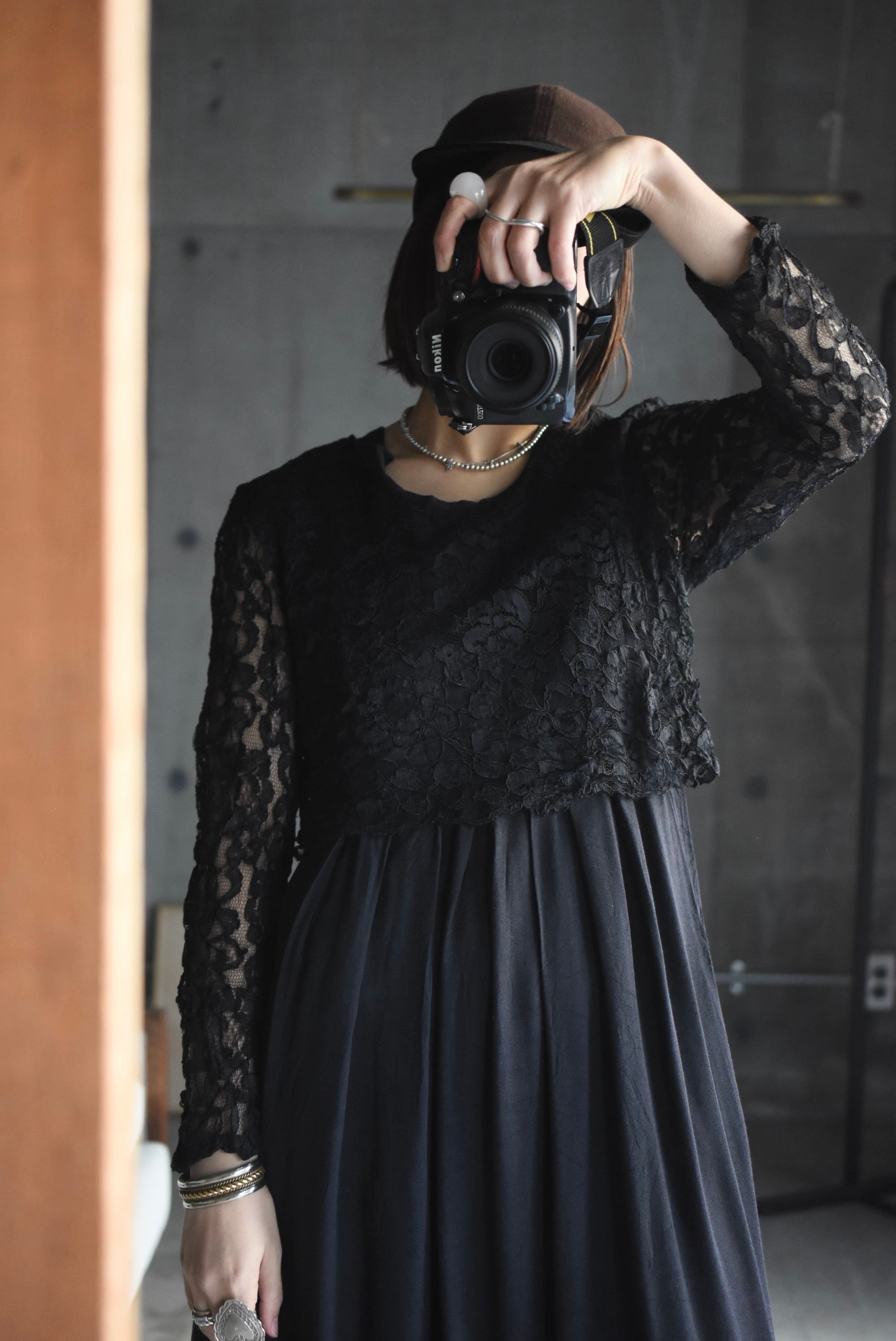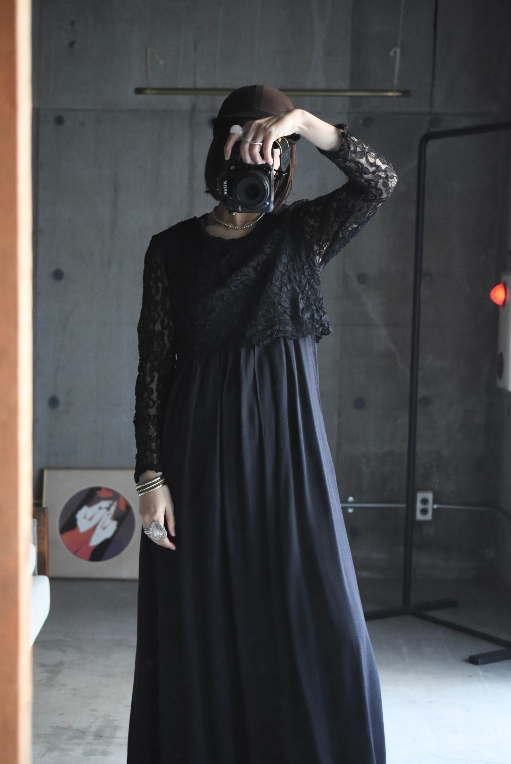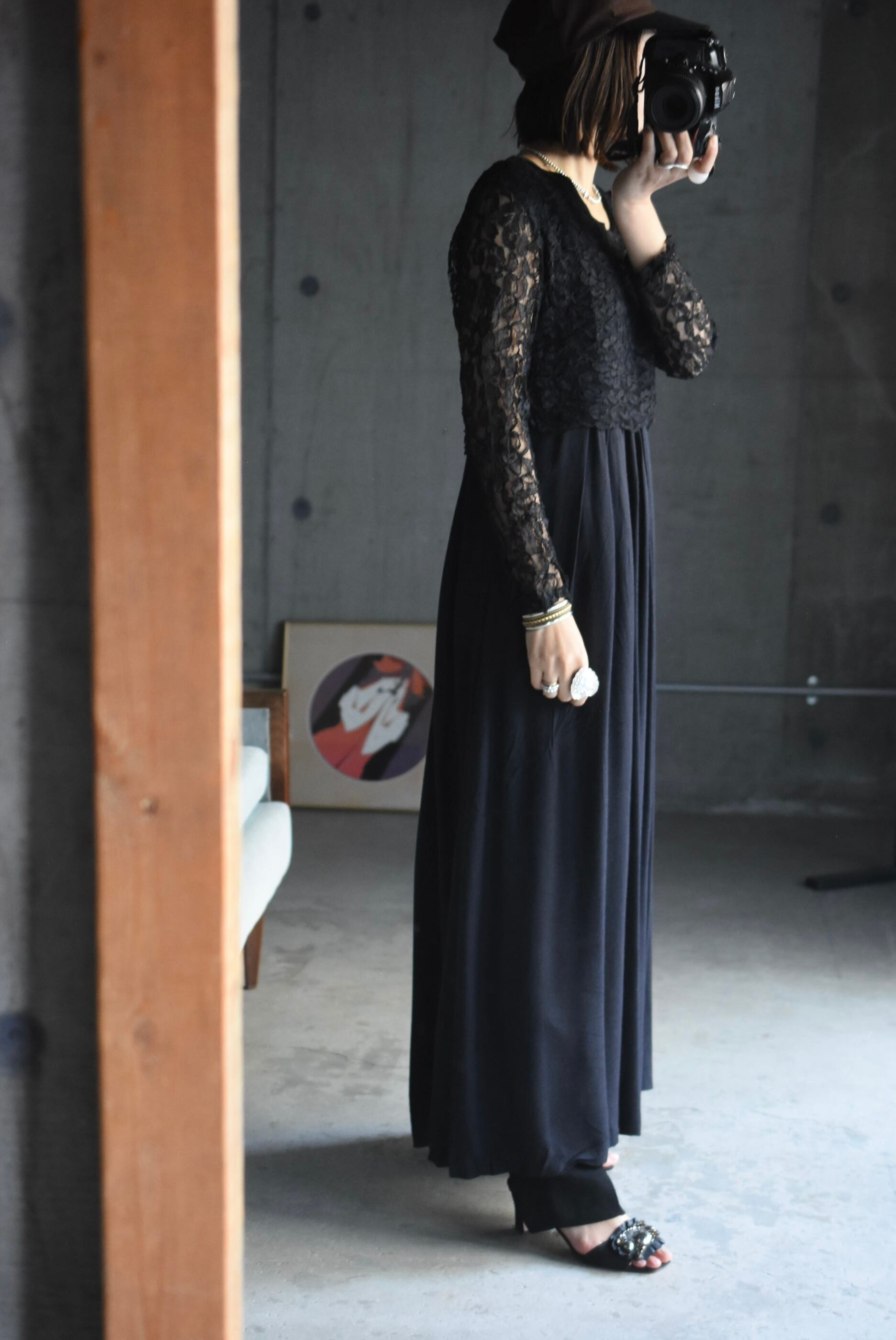 80's vintage design lace black dress.