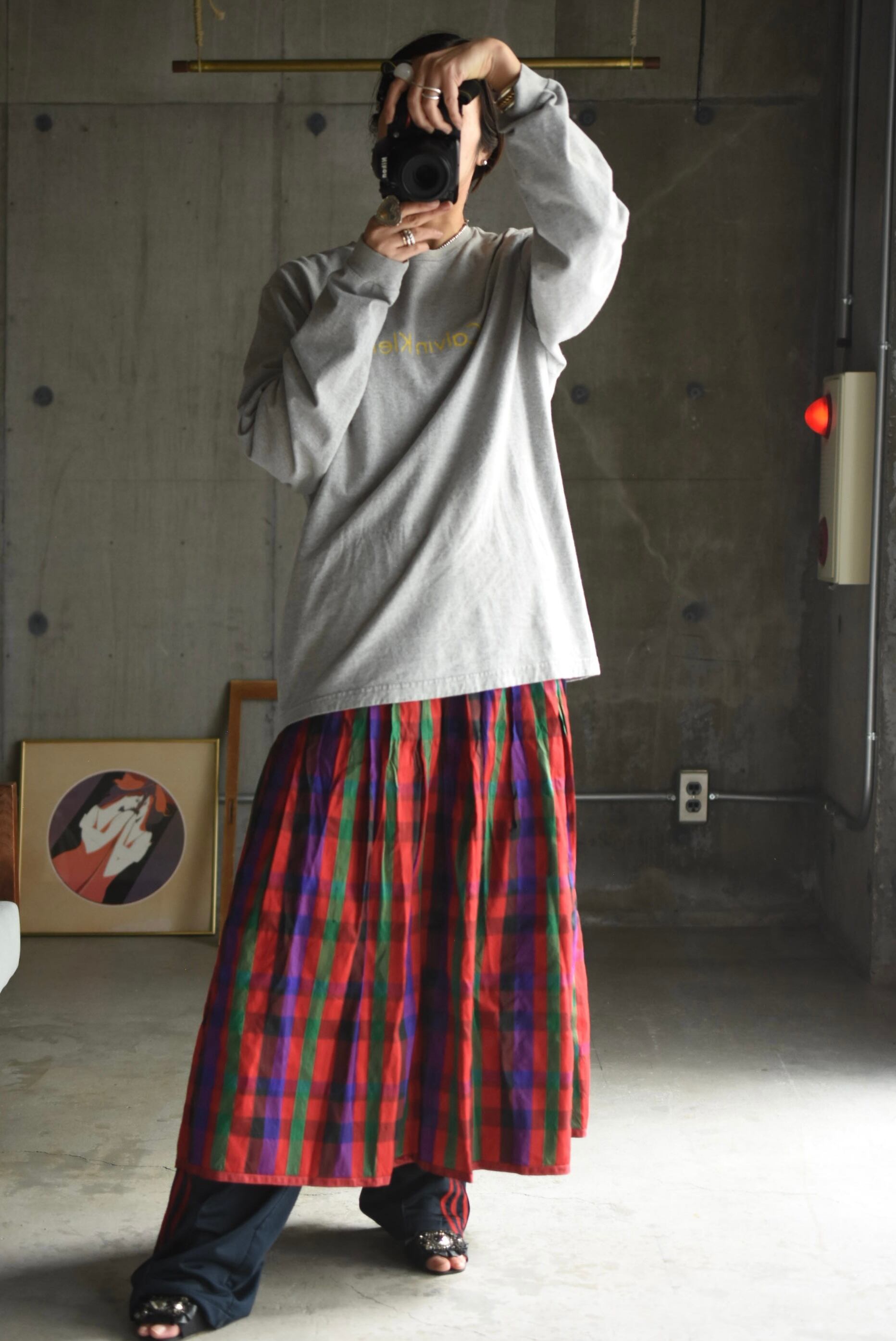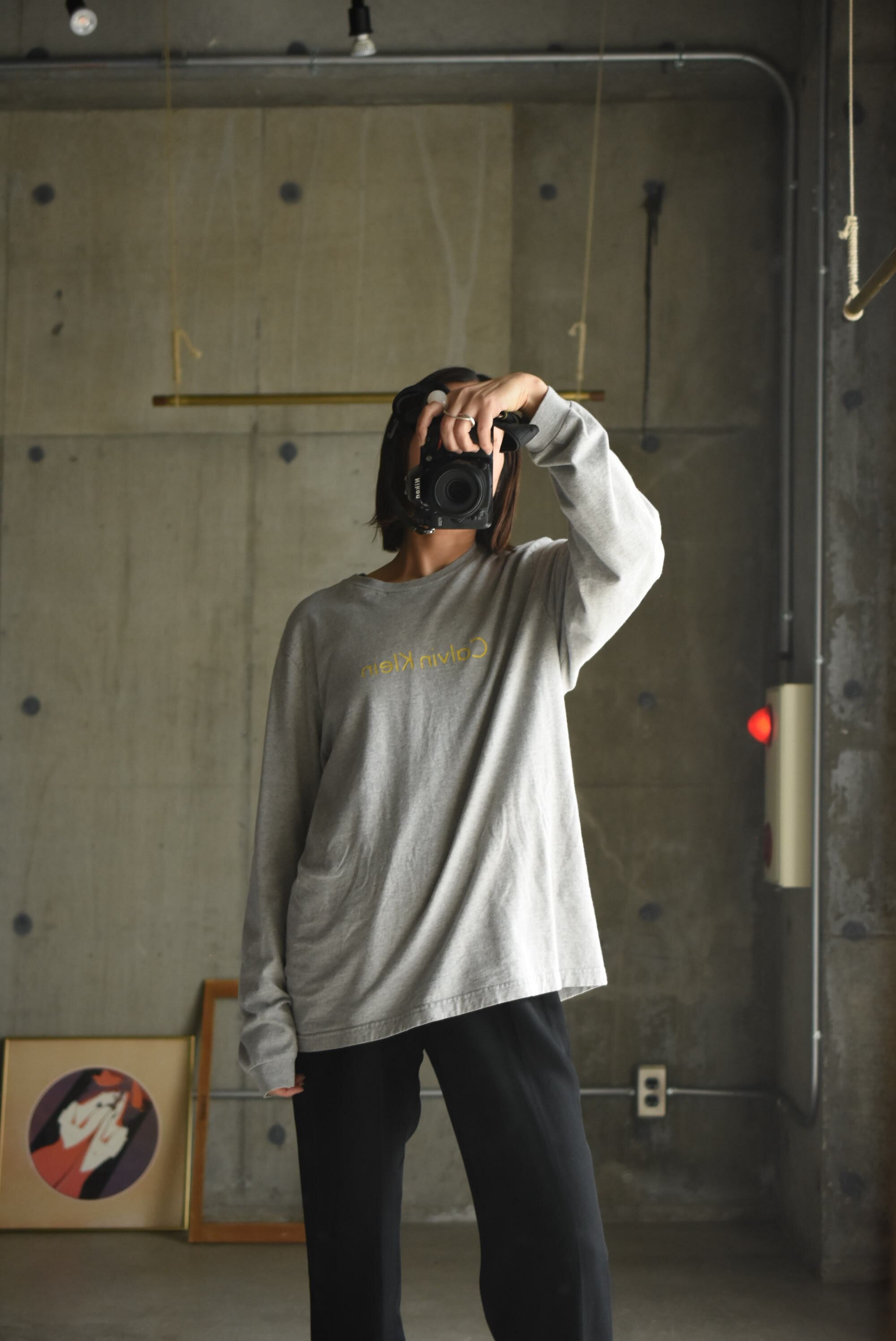 90-00's "Calvin Klein" logo long T-shirt.