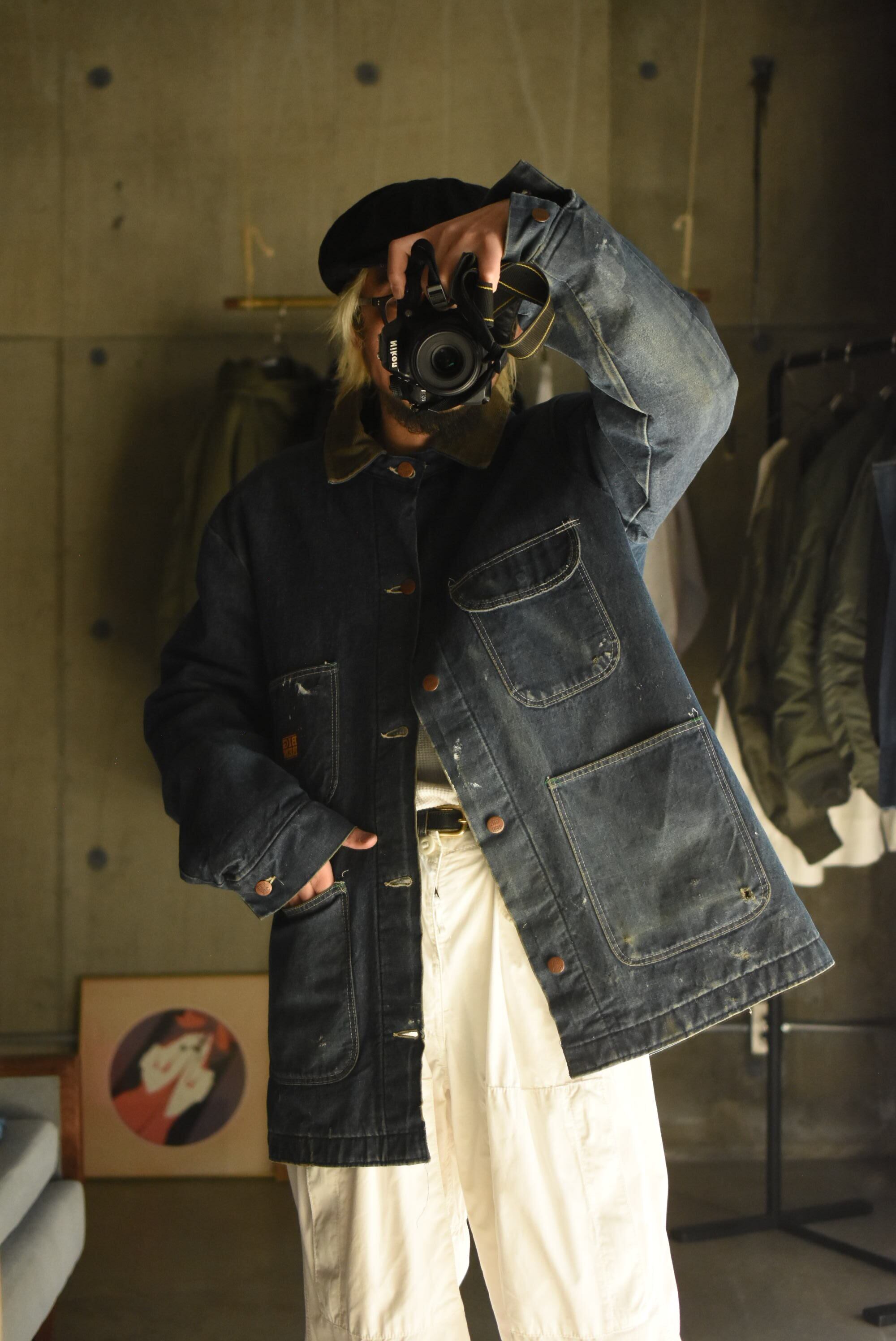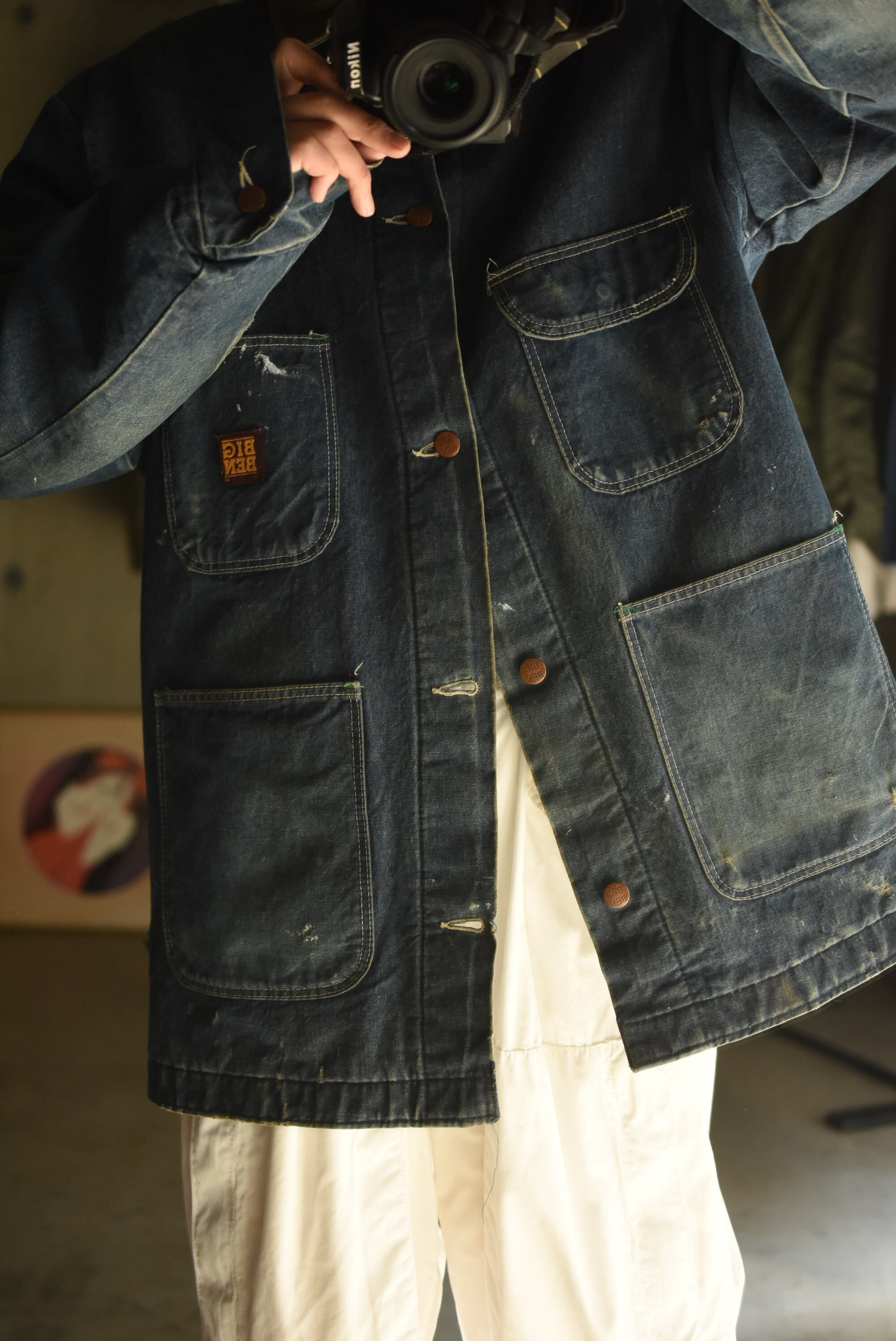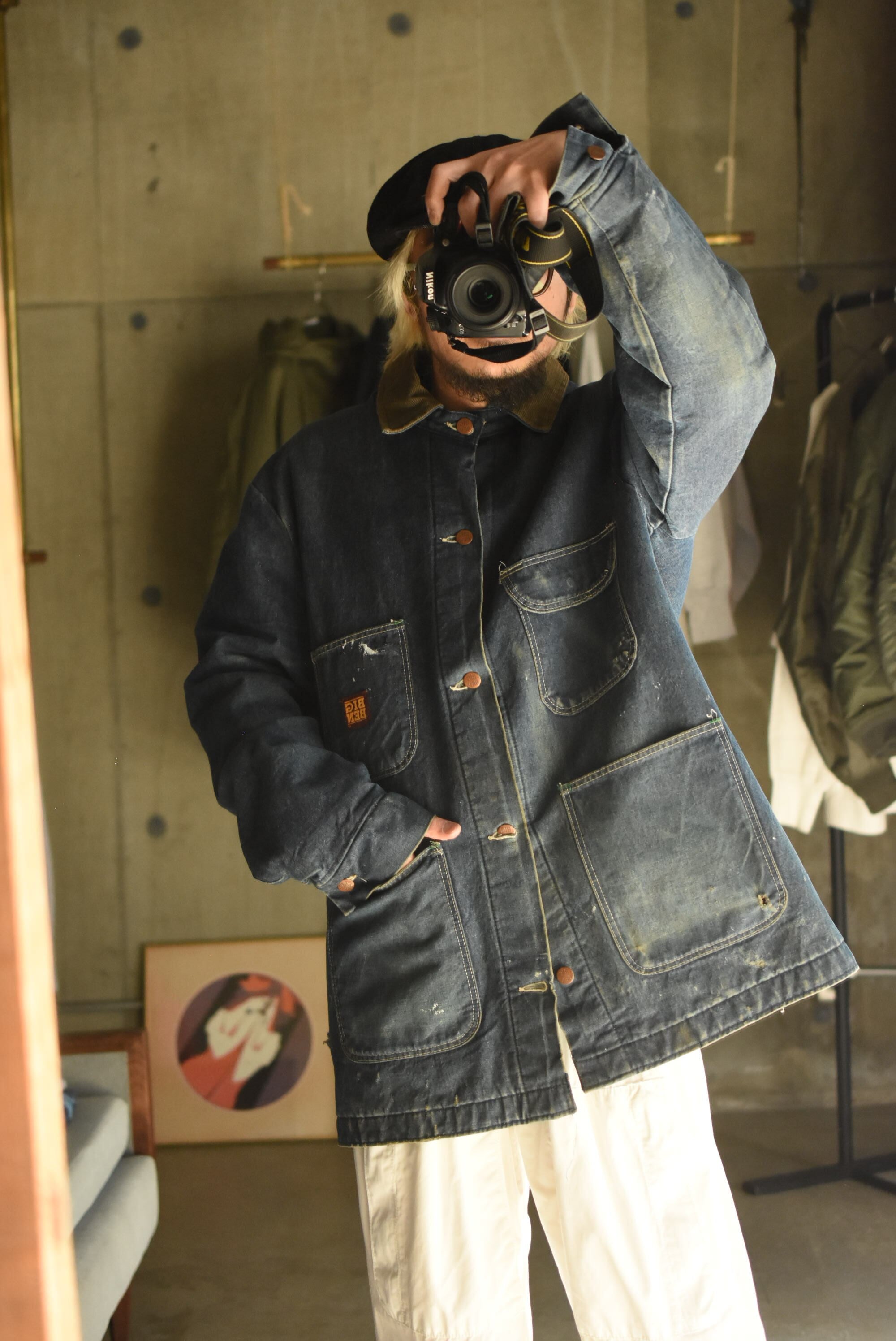 70-80's "BIG BEN" wool branket lining batdye denim coverall.