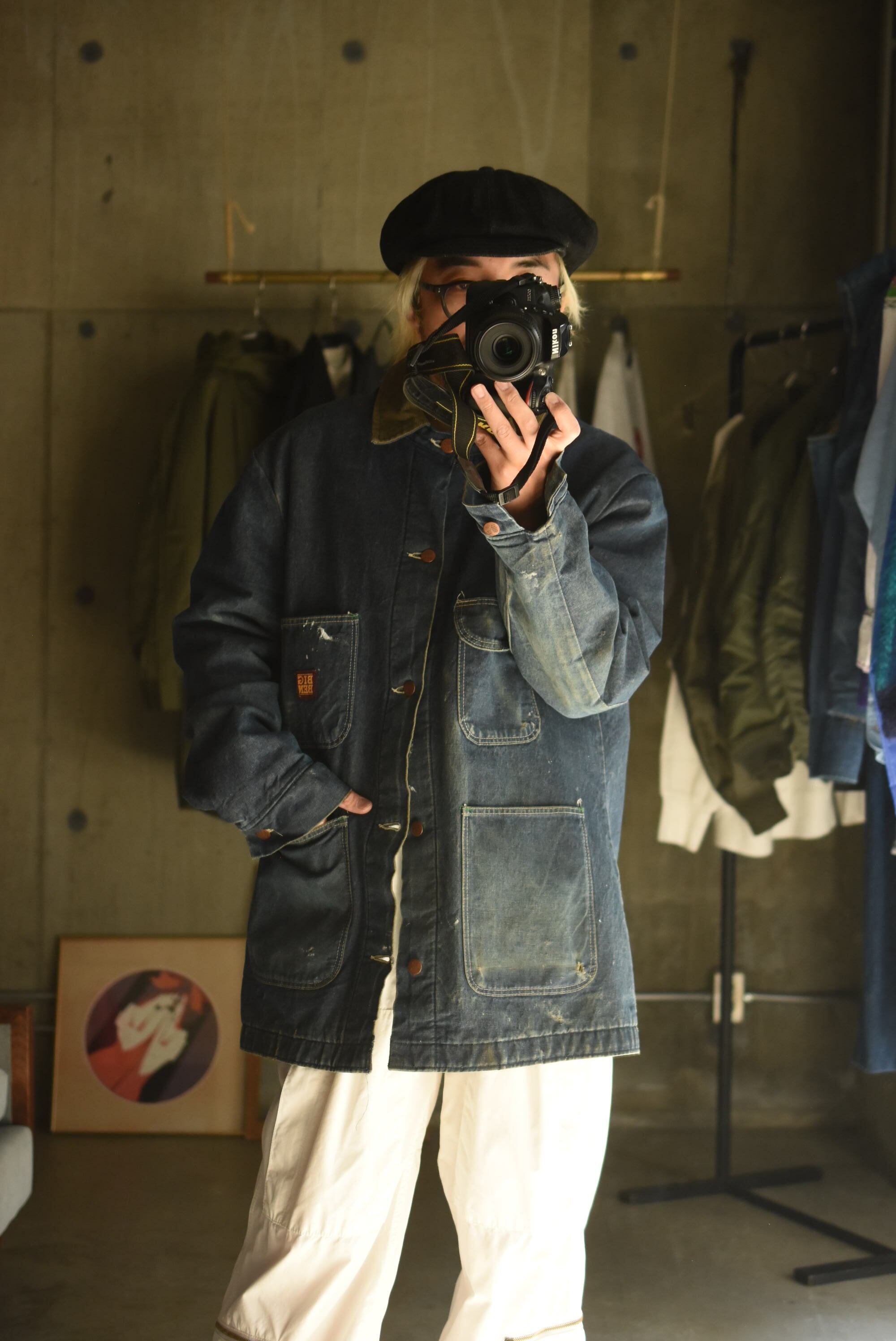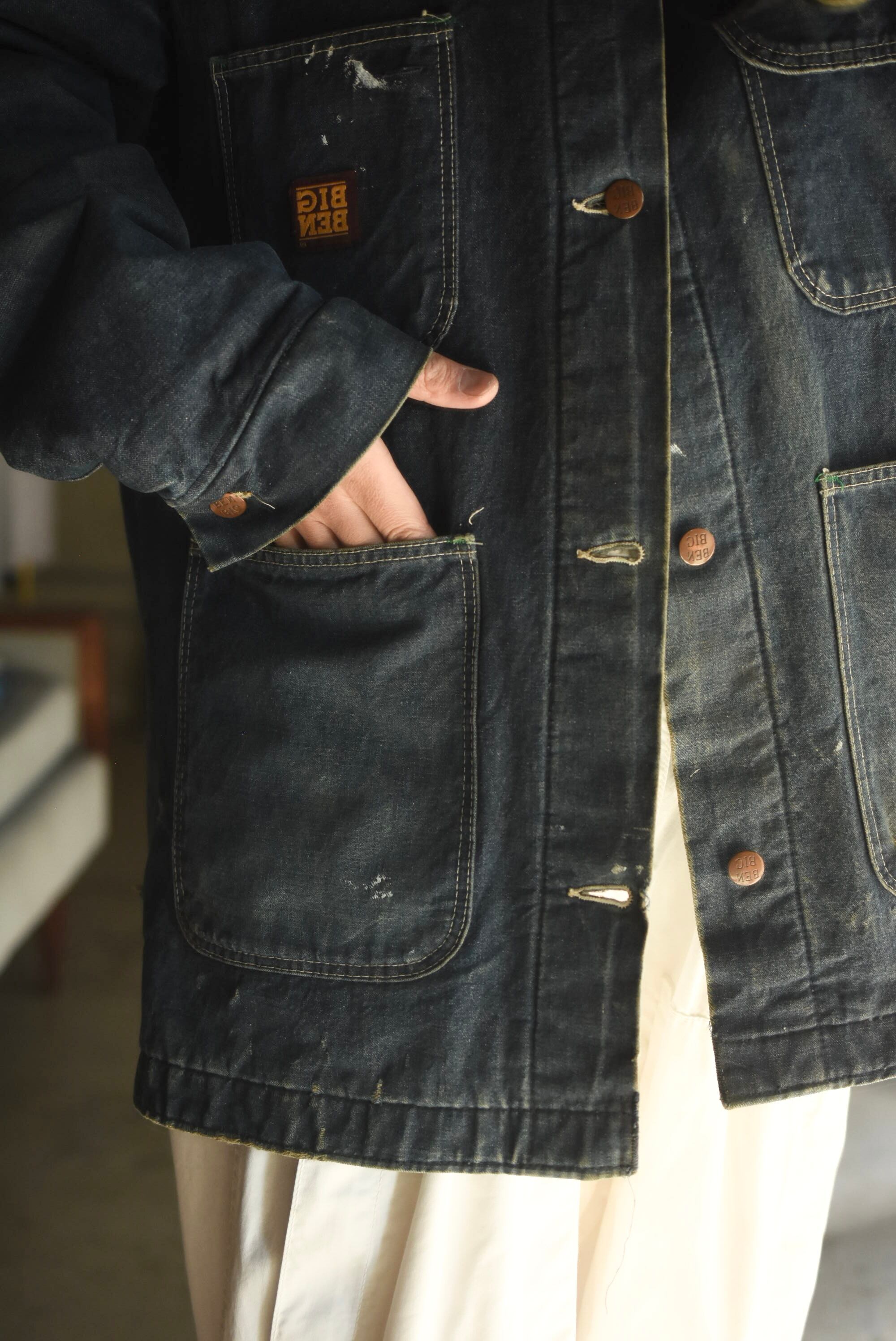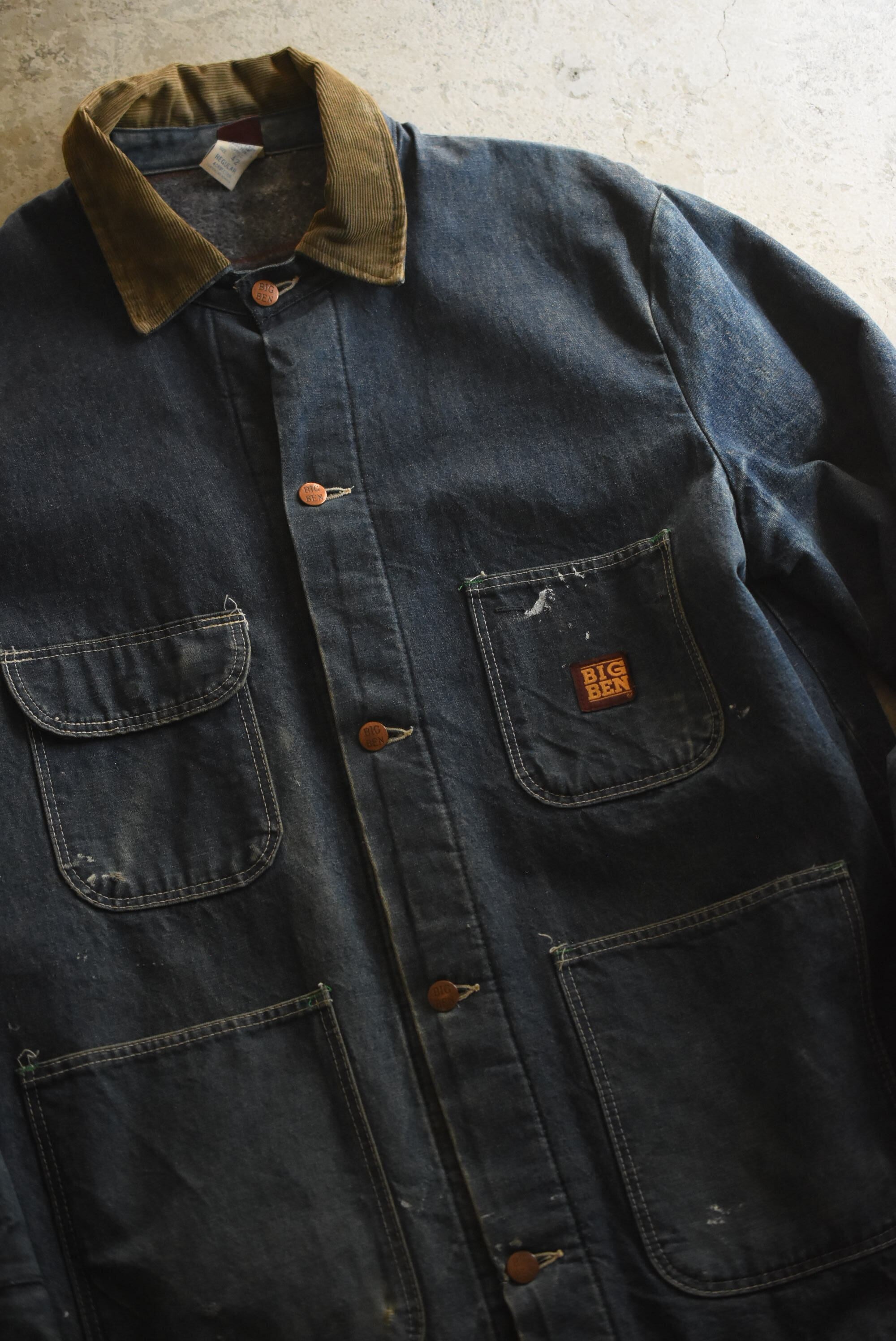 70-80's "BIG BEN" wool branket lining batdye denim coverall.