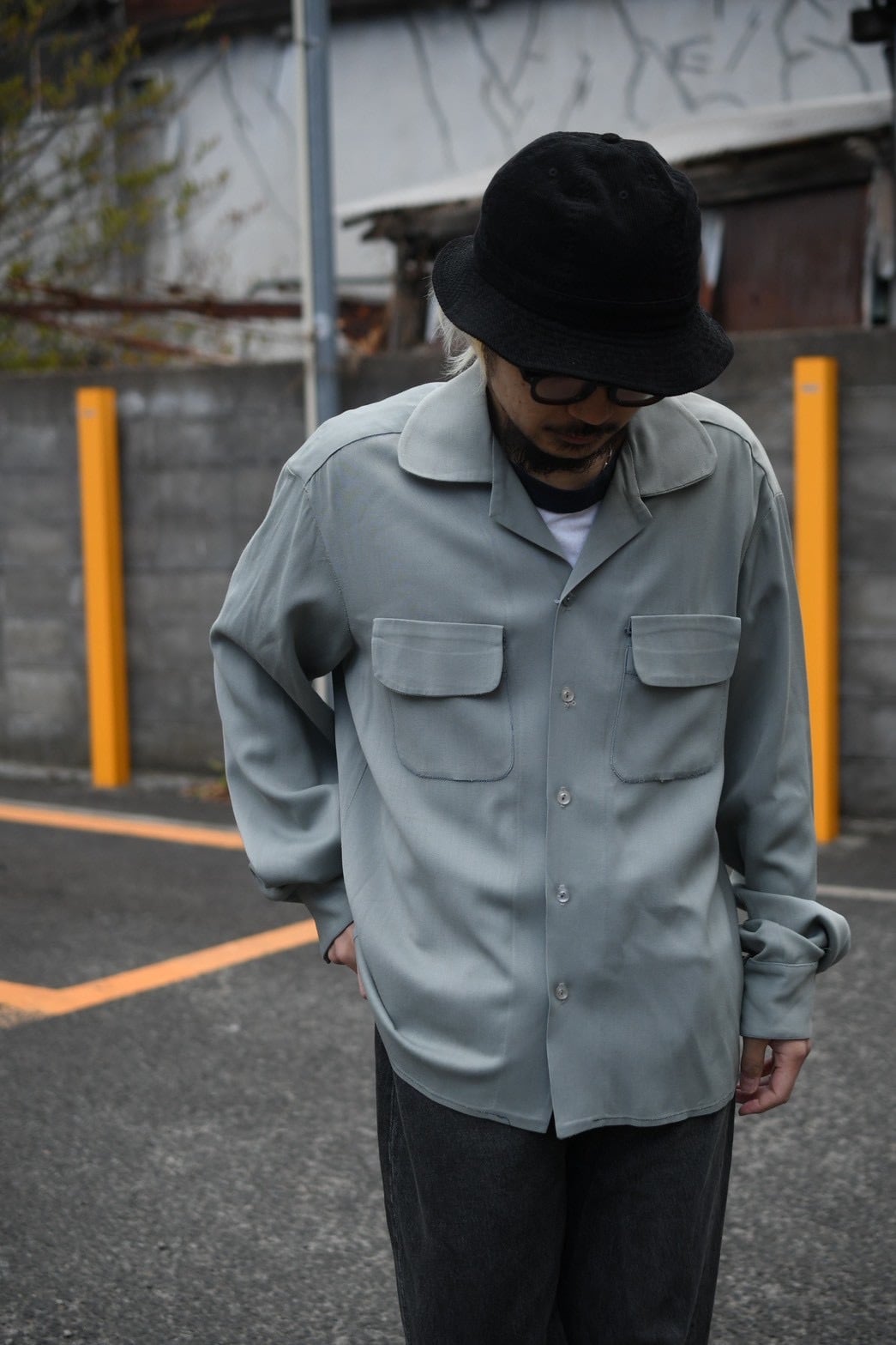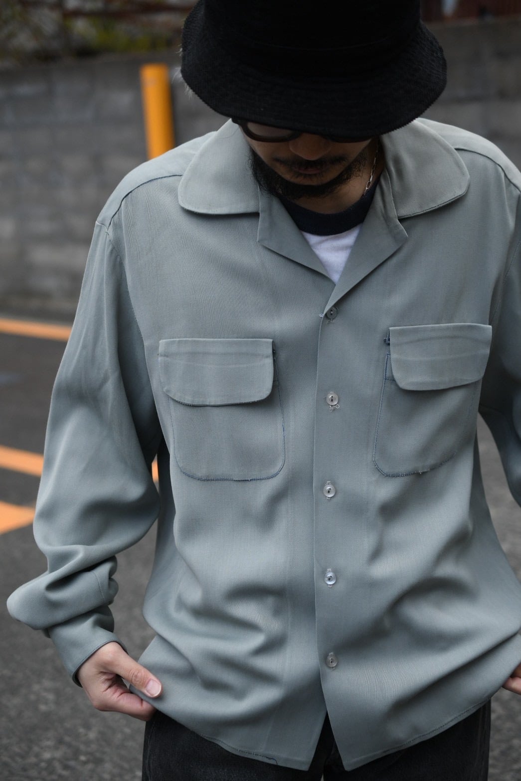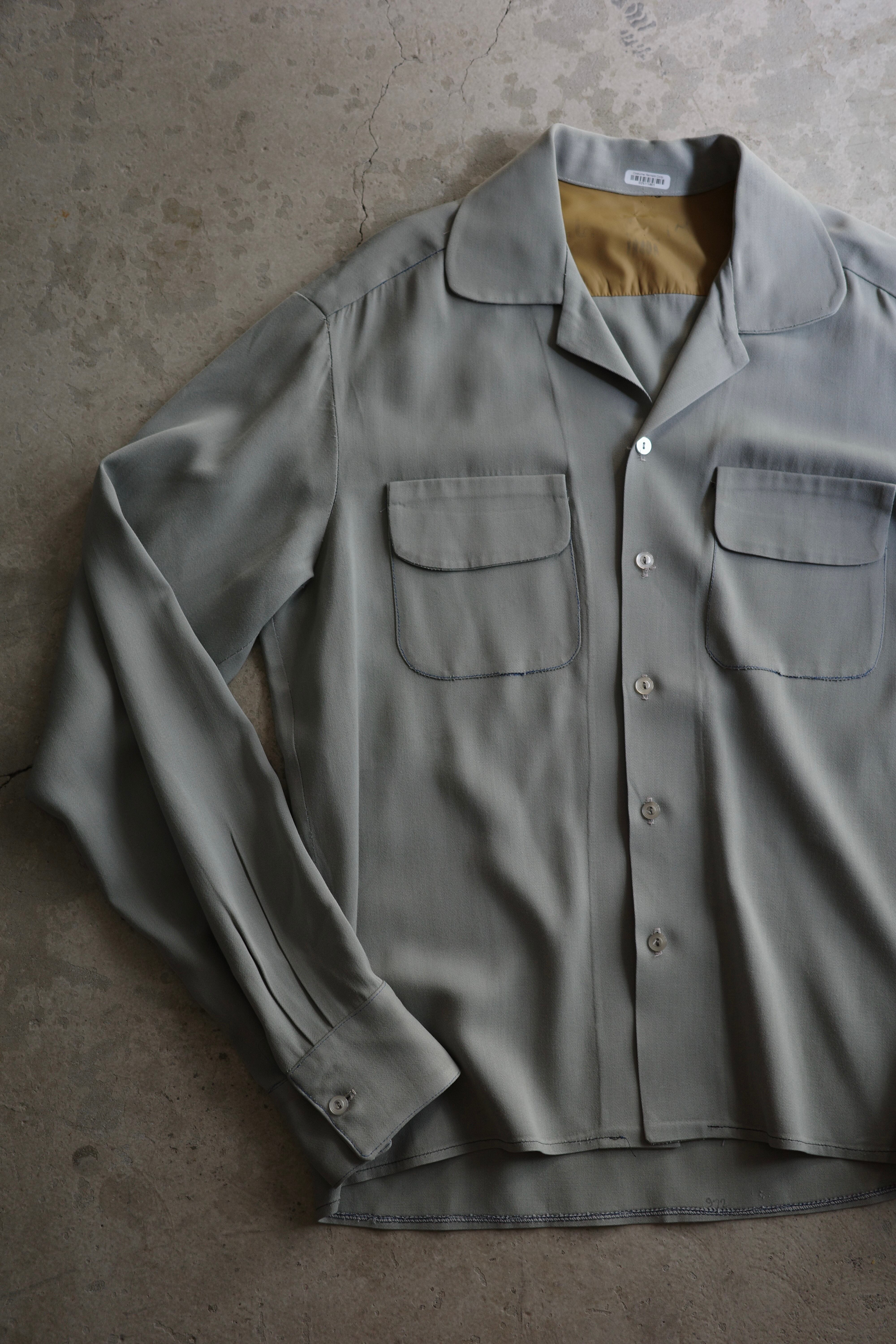 50's no-brand rayon gabardine open collar shirt.