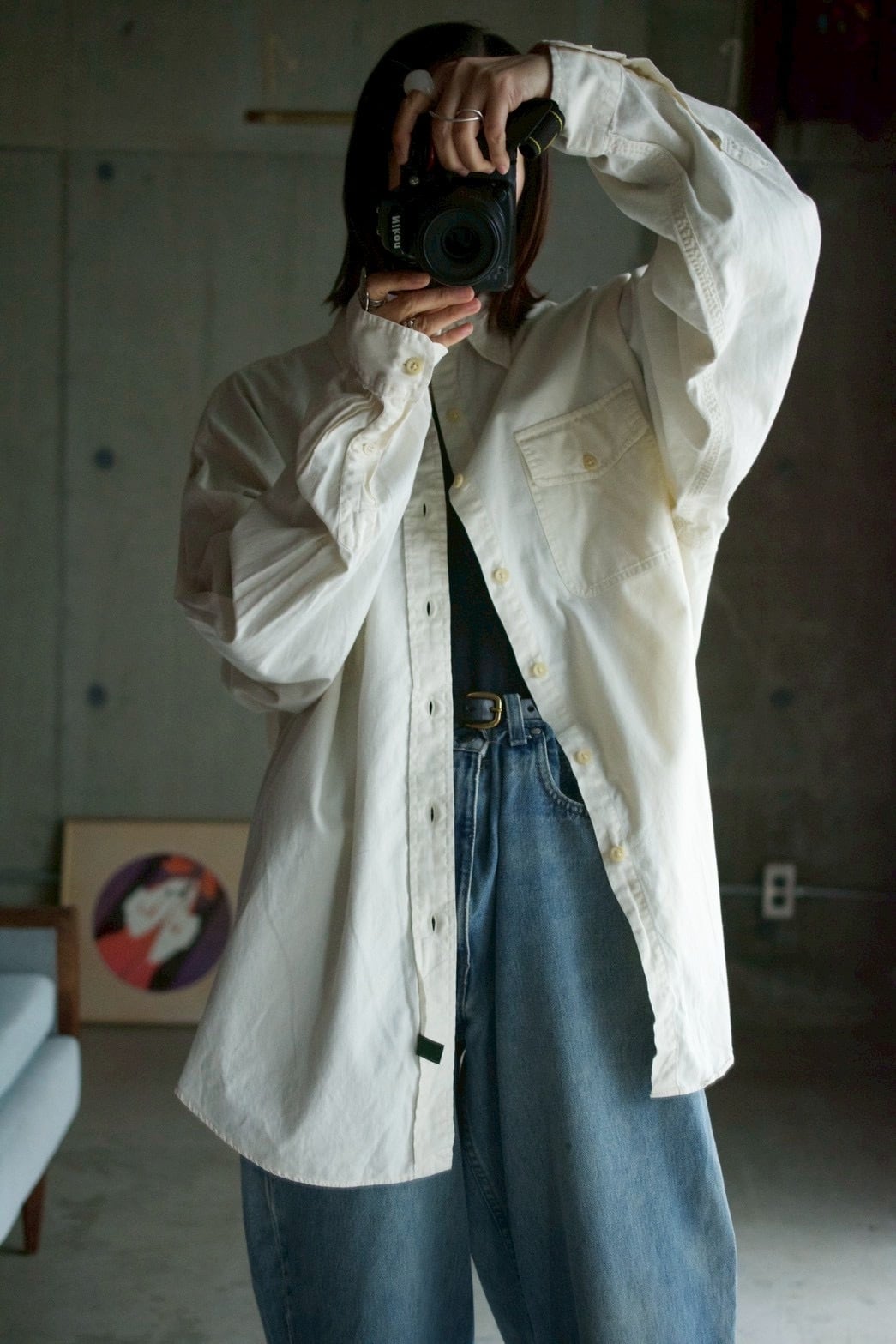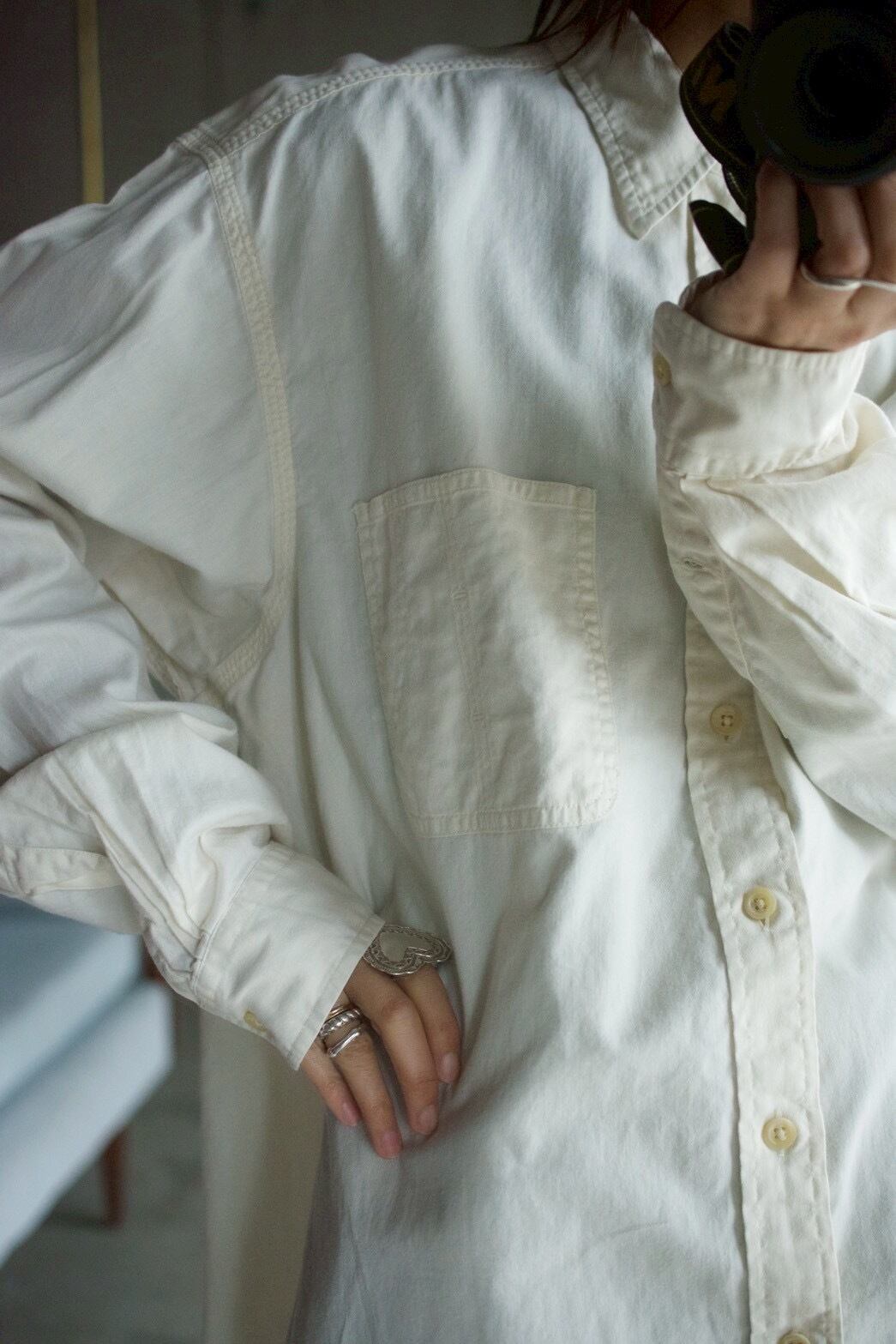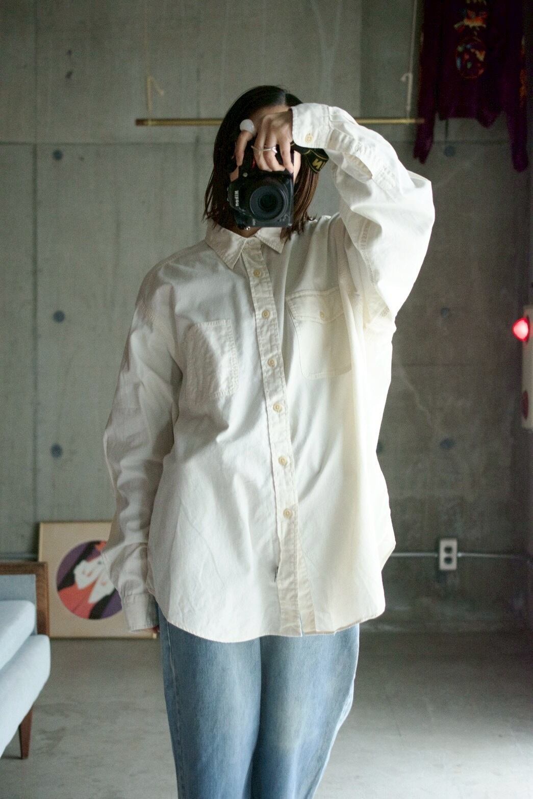 90's "Ralph Lauren" off-white work shirt. [ POLO COUNTRY ]